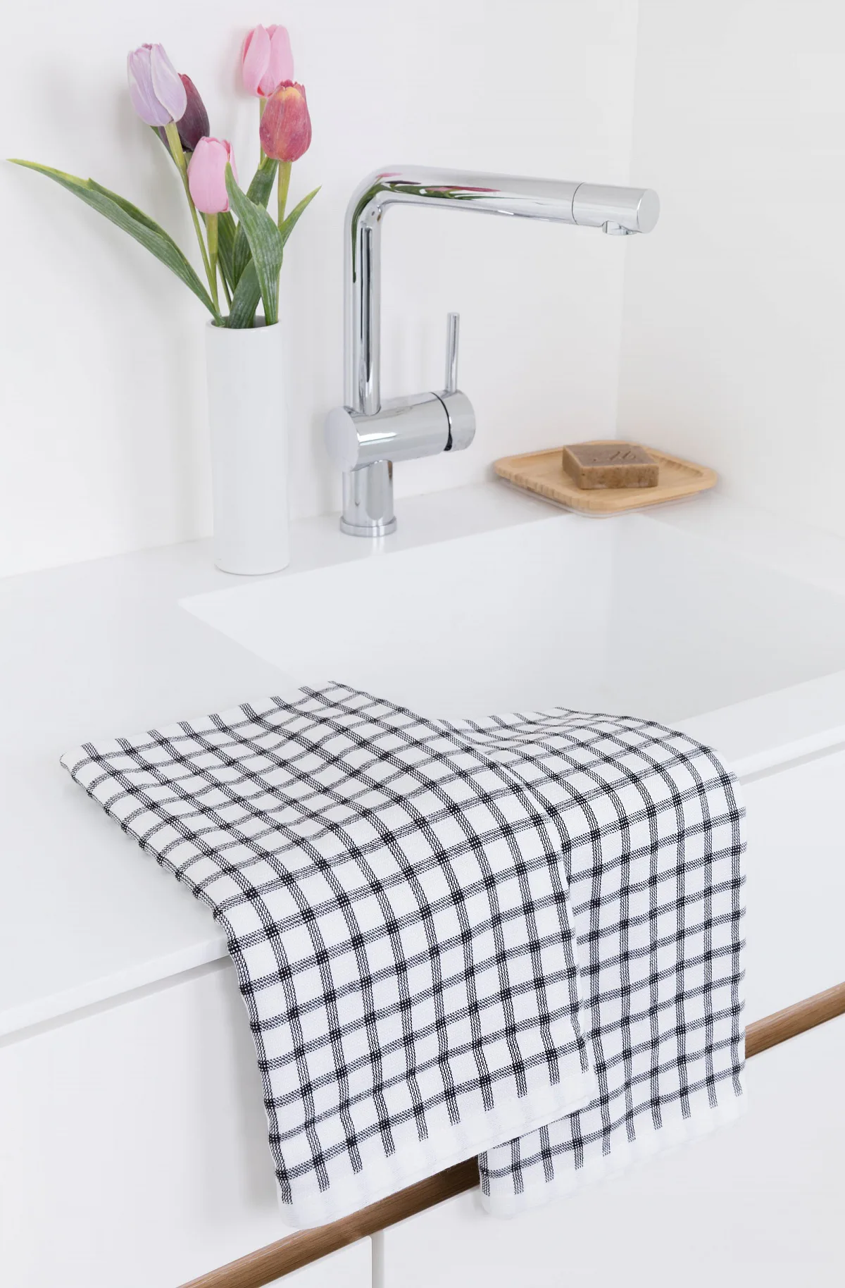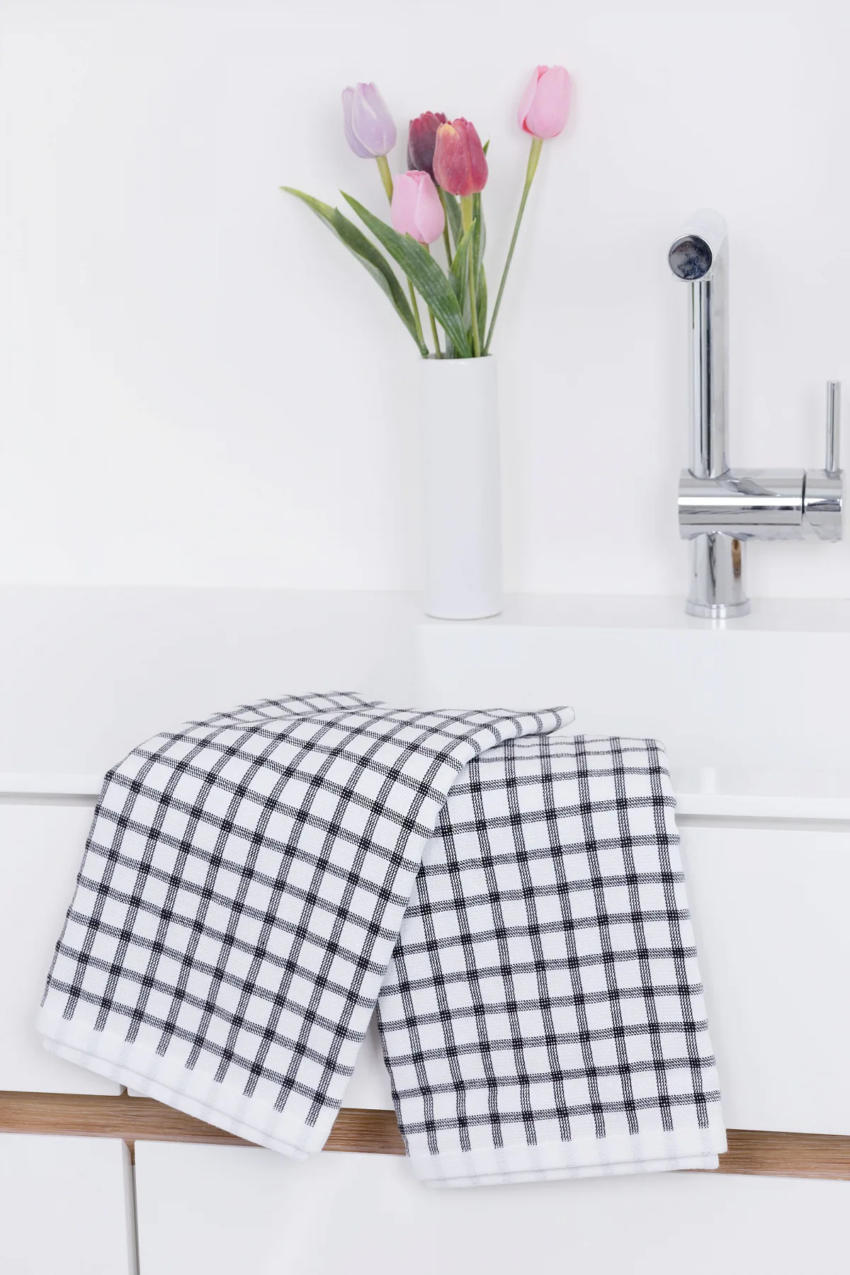 Kuchyňské utěrky Kostky vynikají svým praktickým provedením a nadčasovým designem. Vrchní strana utěrky je hladká s jednoduchým kostkovaným vzorem, spodní stranu tvoří hebké bílé froté s prosvítajícím motivem kostek z vrchní strany. Díky optimální gramáži utěrky výborně sají a velmi rychle schnou. Utěrky mají všechny čtyři strany lemované a jsou opatřeny praktickým poutkem.
