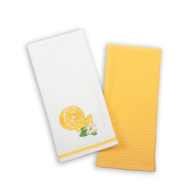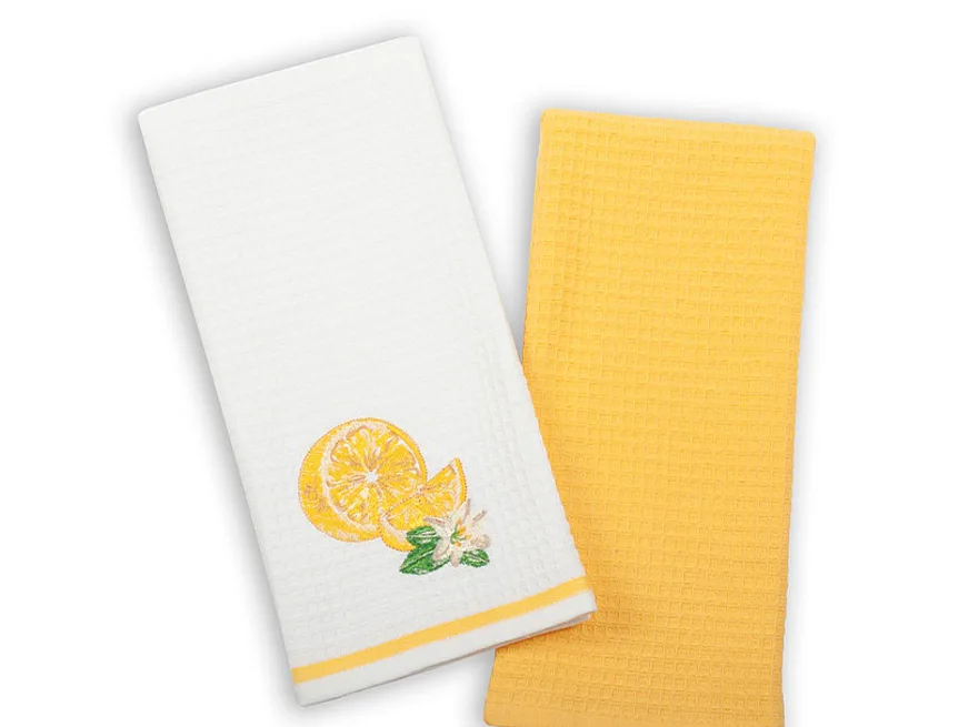 Atraktivní a precizně provedené lesklé výšivky se skvěle doplňují s okouzlujícími barevnými odstíny napříč celou kolekcí vaflových utěrek.