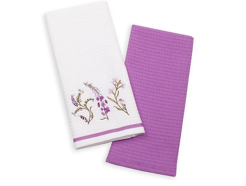 - 1x bílá utěrka s výšivkou a fialovou bordurou