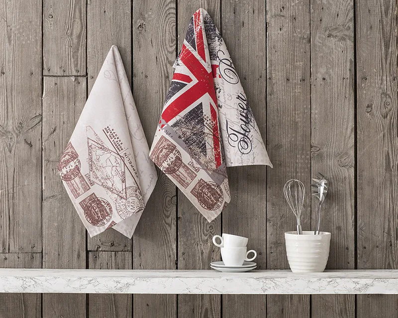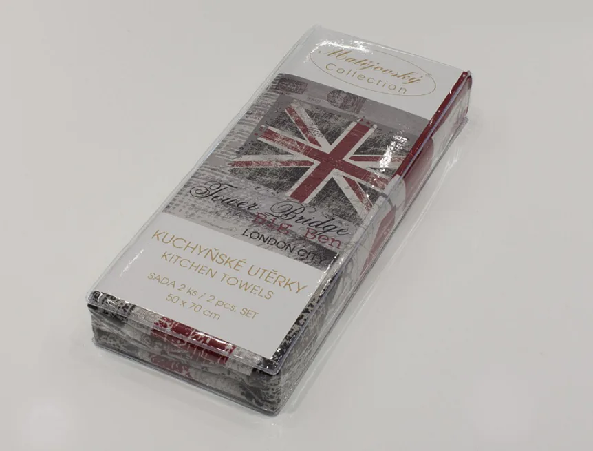 Exkluzivní kolekce designových kuchyňských utěrek přináší vzor - LONDON CITY. Nápaditá a svěží koláž londýnských motivů osvěží každý moderní interiér kuchyně.