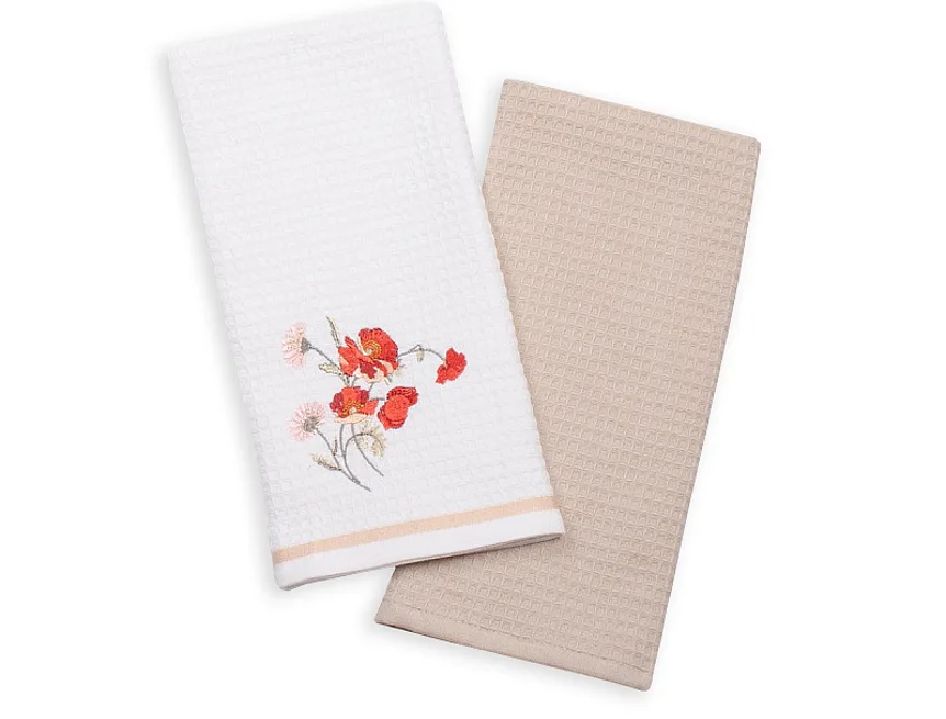 • 1x bílá utěrka s výšivkou a béžovou bordurou