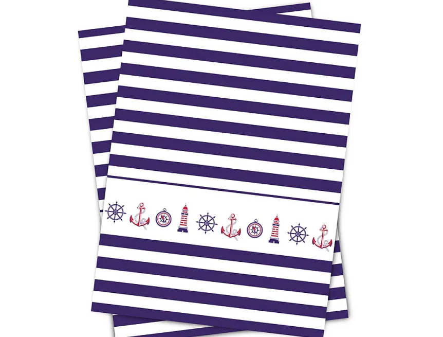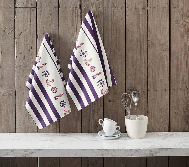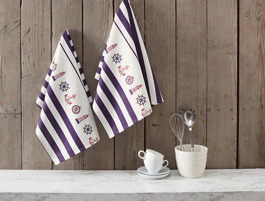 Nová exkluzivní kolekce designových kuchyňských utěrek přináší vzor MARINE. Oblíbený námořnický motiv laděný do švestkově modré barvy osvěží každý moderní interiér kuchyně.