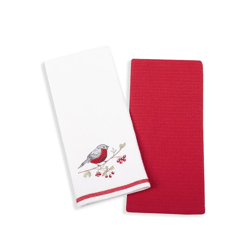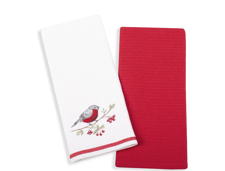 Atraktivní a precizně provedené lesklé výšivky se skvěle doplňují s okouzlujícími barevnými odstíny napříč celou kolekcí vaflových utěrek.