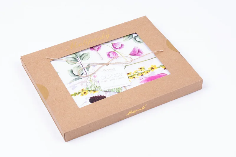 Při výrobě bambusových utěrek jsme vedle uživatelského komfortu mysleli také na přírodu. Pěstování bambusu je šetrné k životnímu prostředí, proto je vhodné jeho široké využití v textilním průmyslu. Precizní digitální potisk je zajištěn ekologickými barvami a set utěrek je elegantně zabalen do papírové krabičky v přírodním provedení.