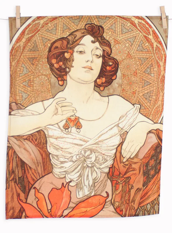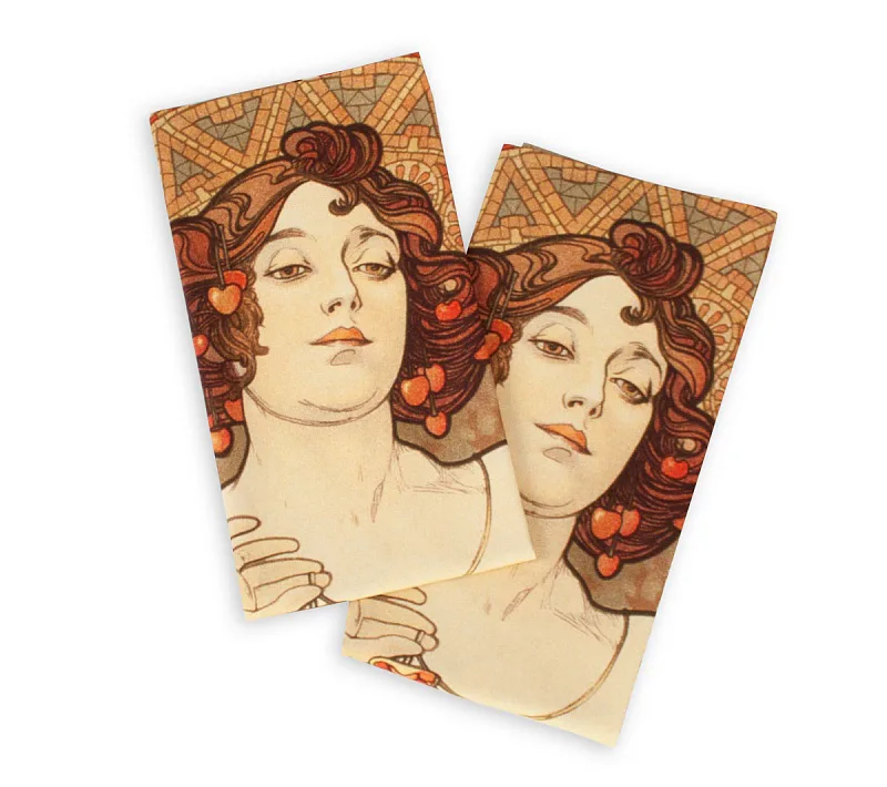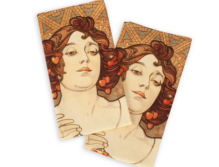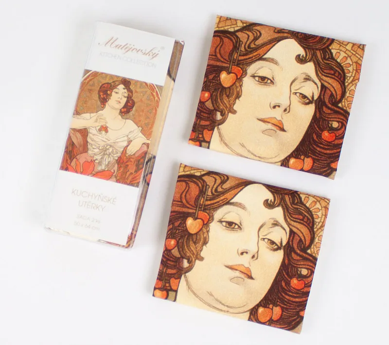 Kolekce bavlněných kuchyňských utěrek s kresbami Alfonse Muchy vnese do vaší kuchyně jediněčnou atmosféru. Nejmodernější digitální tisková technologie zajišťuje zářivé barvy a precizní detaily.