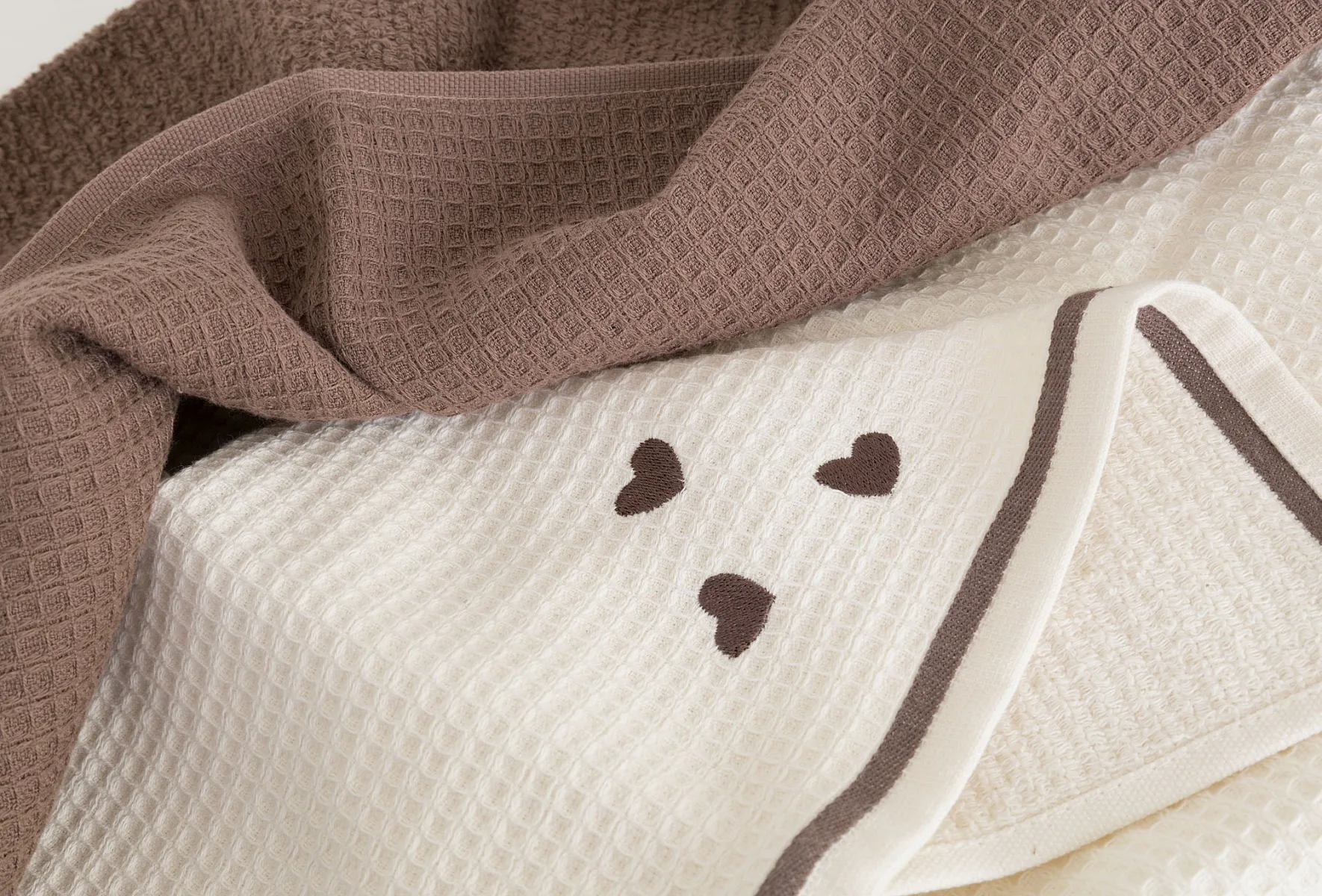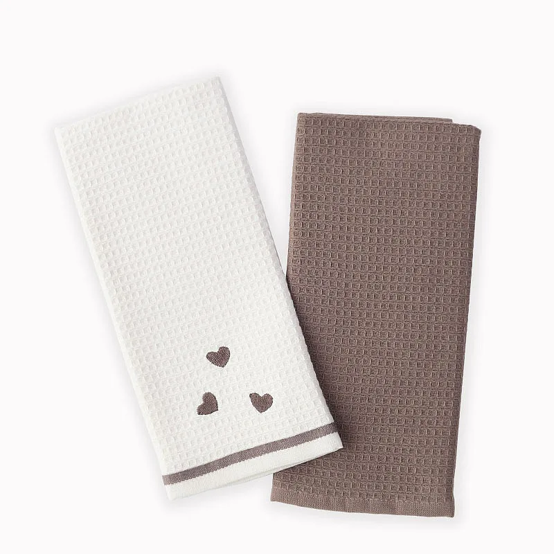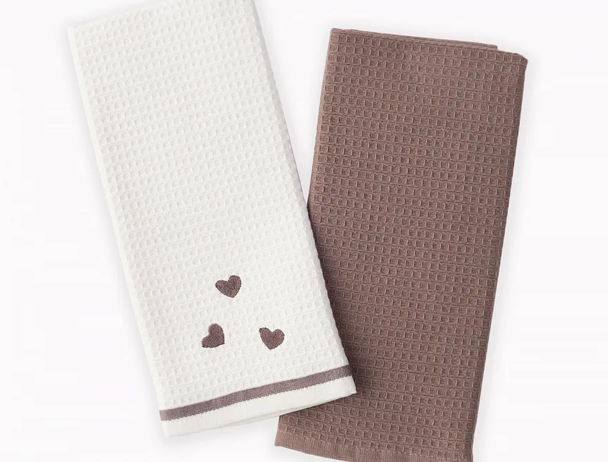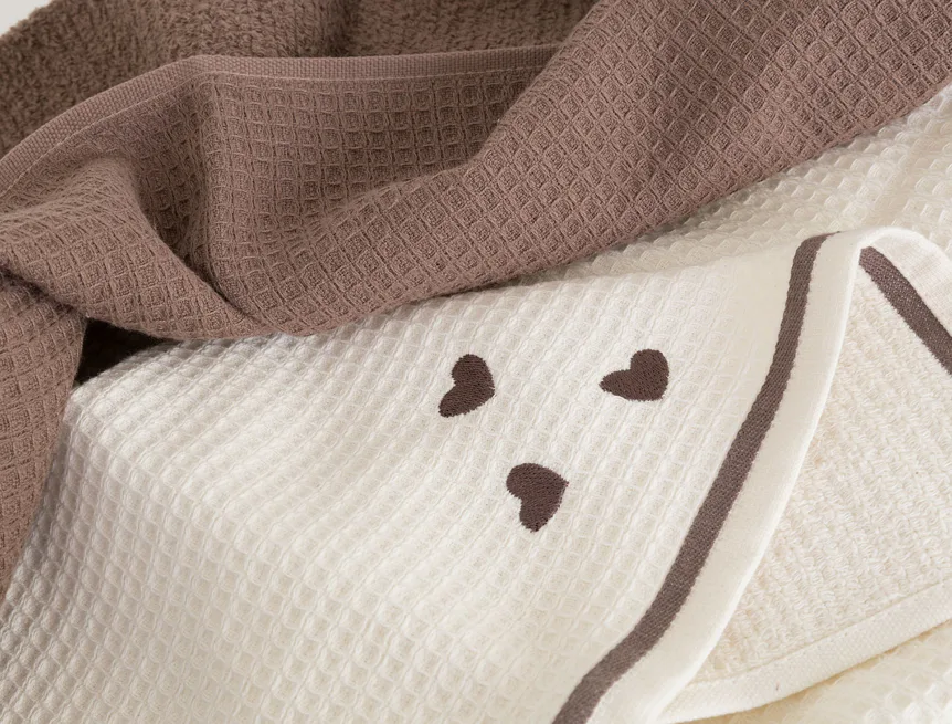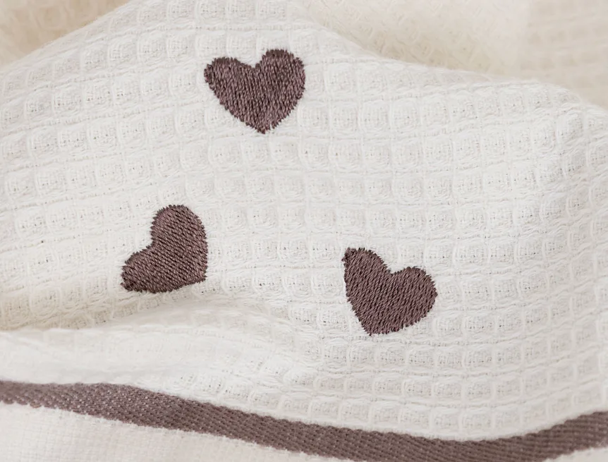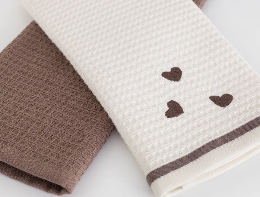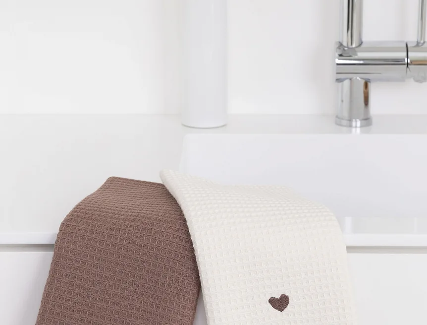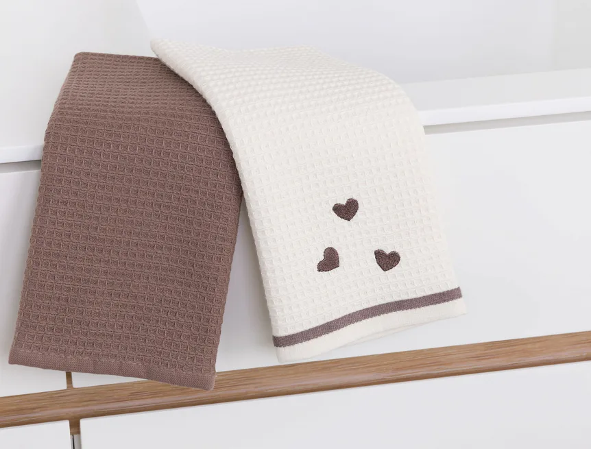Atraktivní a precizně provedené lesklé výšivky se skvěle doplňují s okouzlujícími barevnými odstíny napříč celou kolekcí vaflových utěrek.