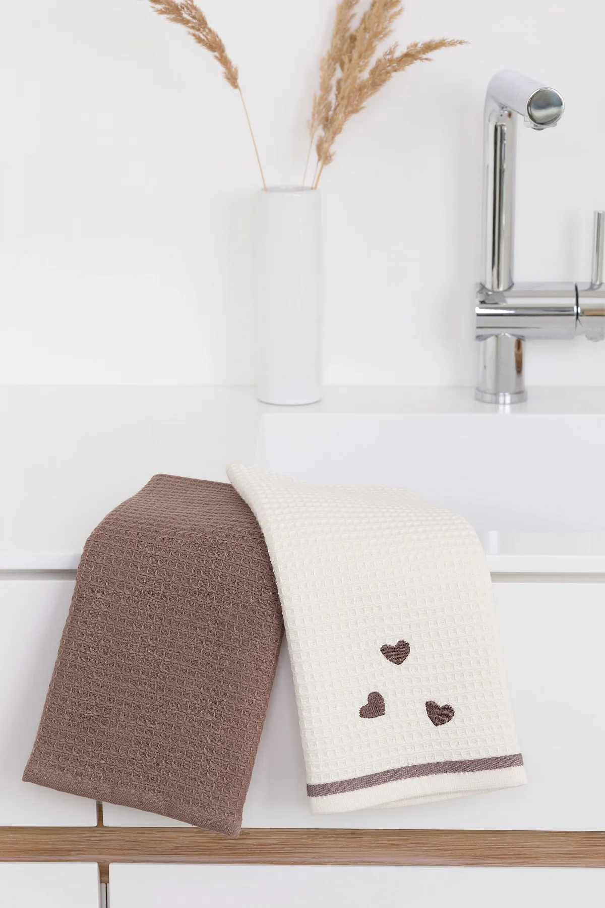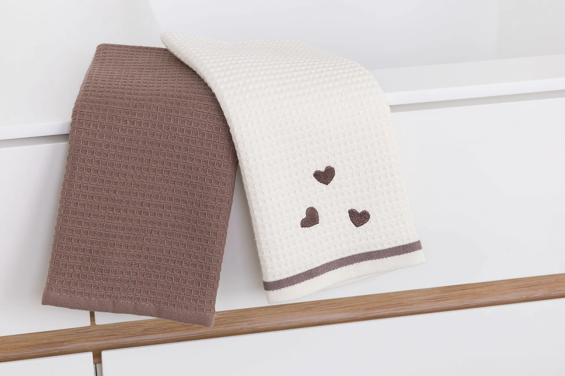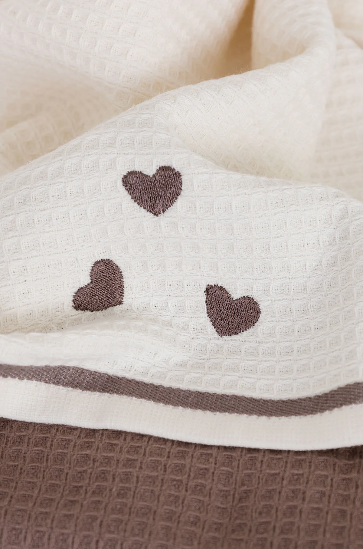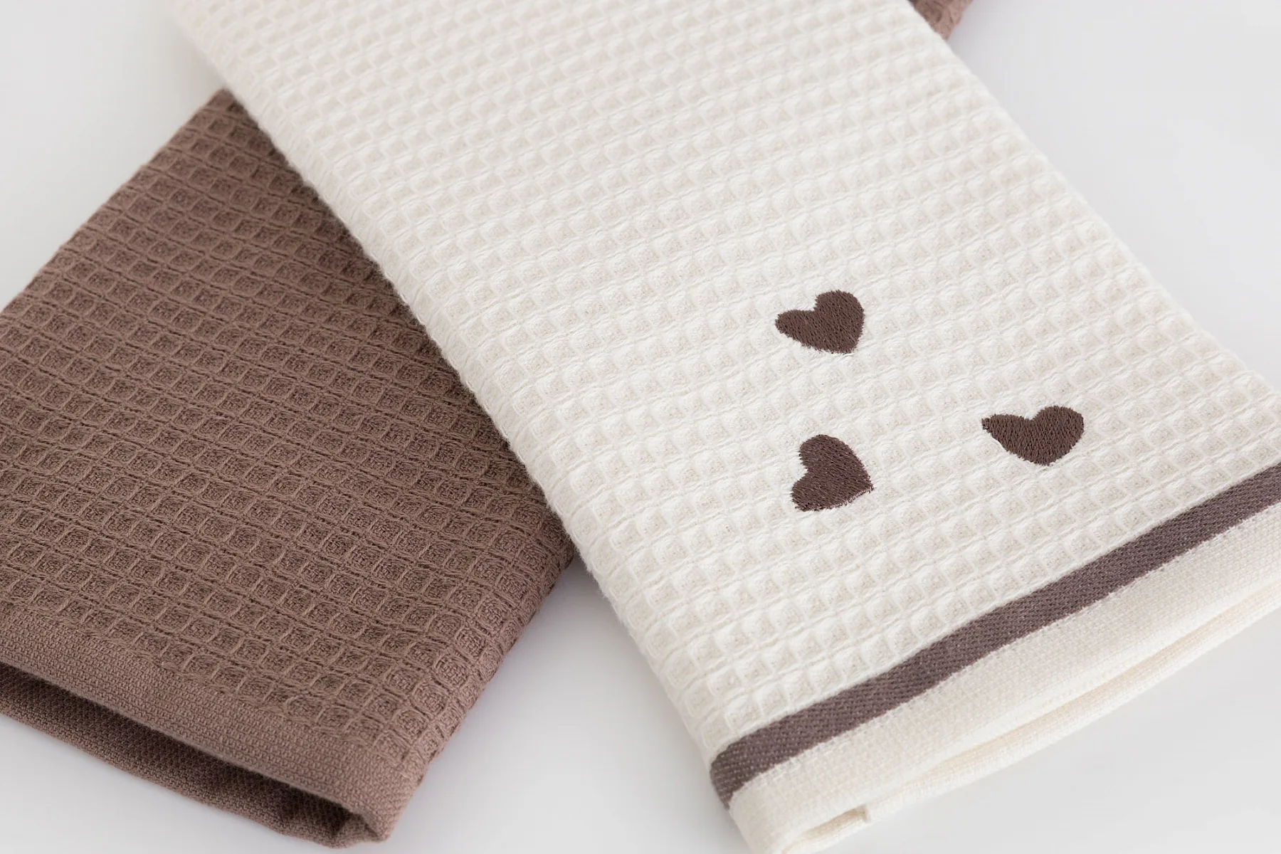 Atraktivní a precizně provedené lesklé výšivky se skvěle doplňují s okouzlujícími barevnými odstíny napříč celou kolekcí vaflových utěrek.