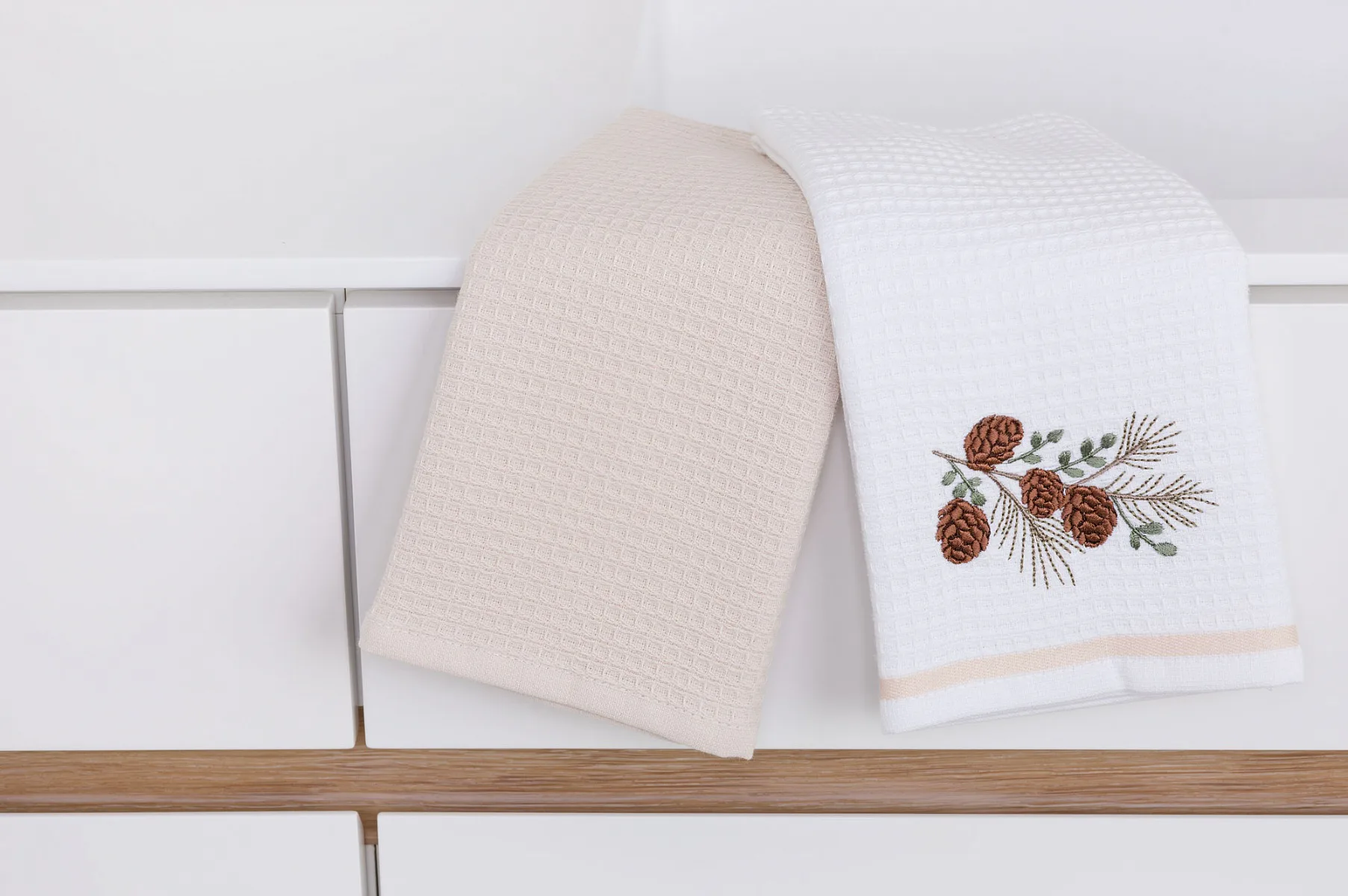 • 1x bílá utěrka s výšivkou a béžovou bordurou