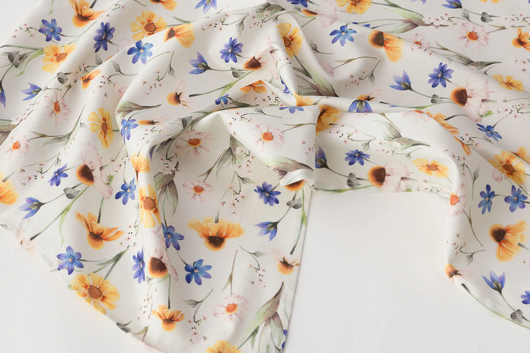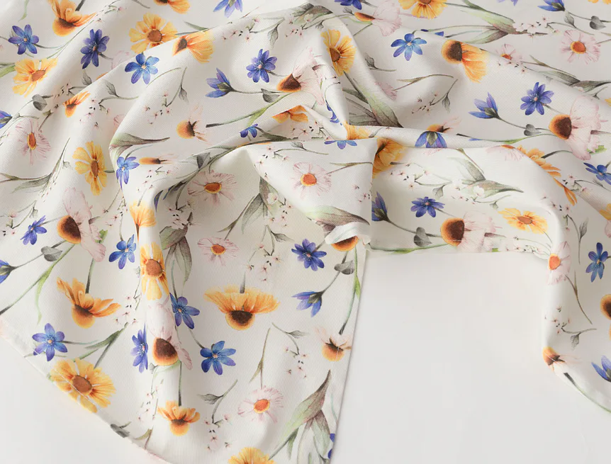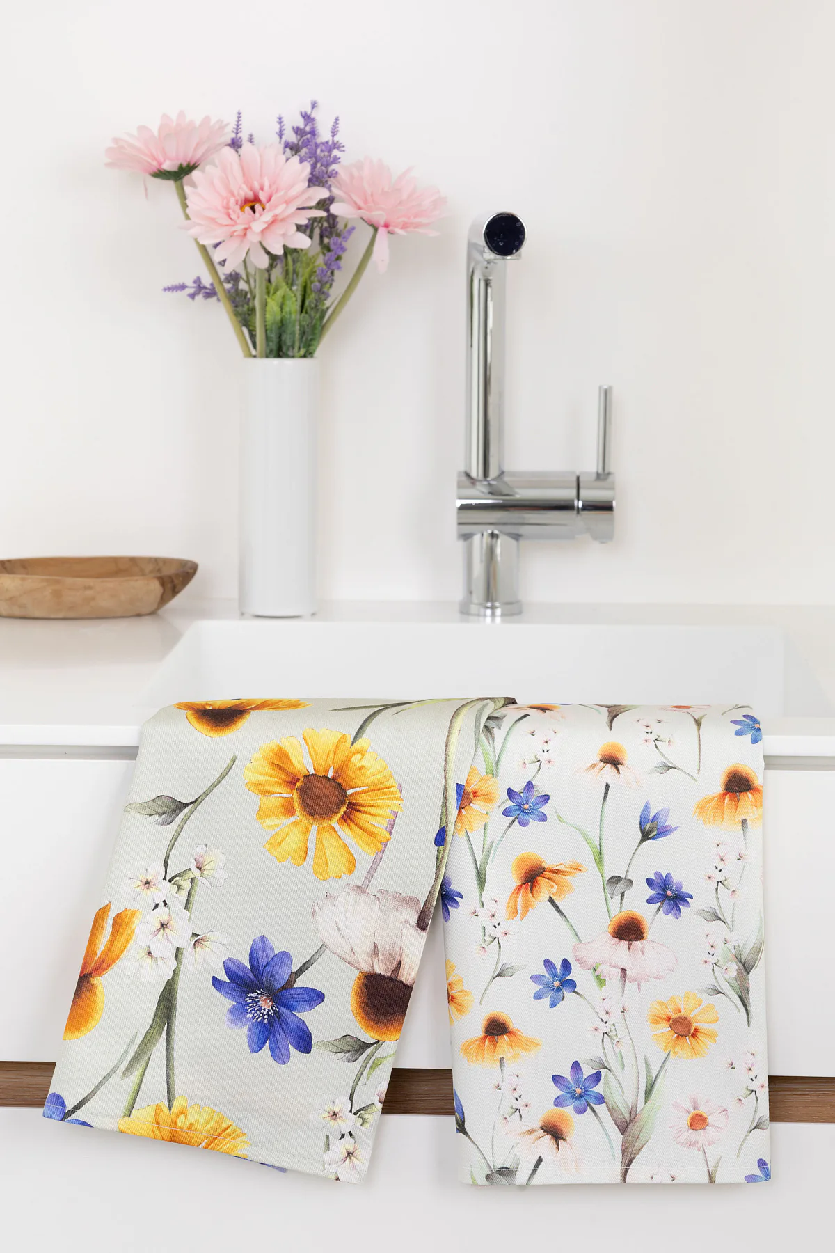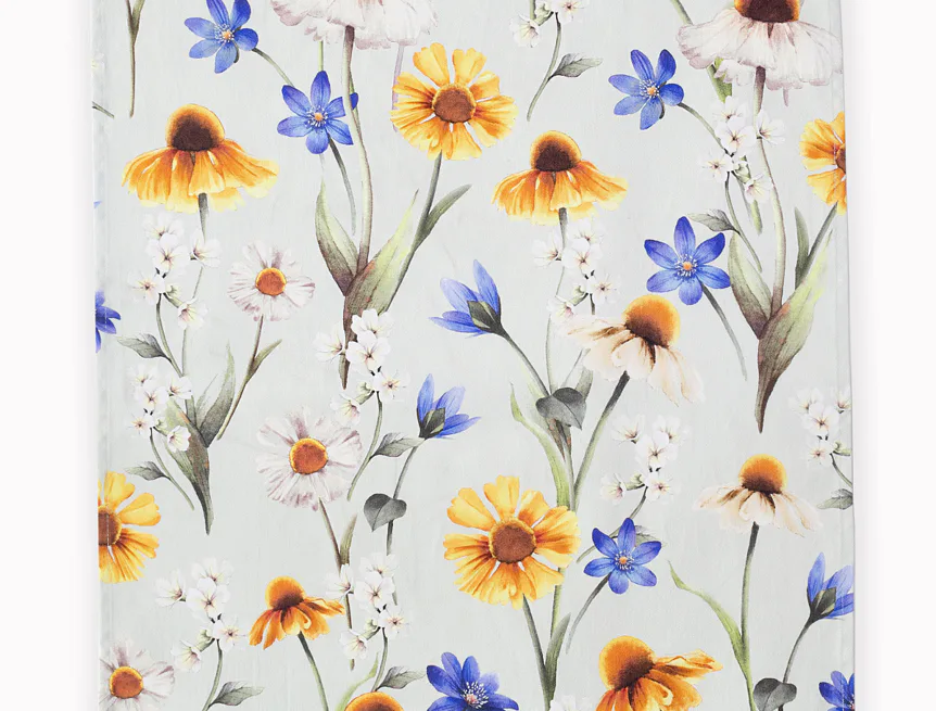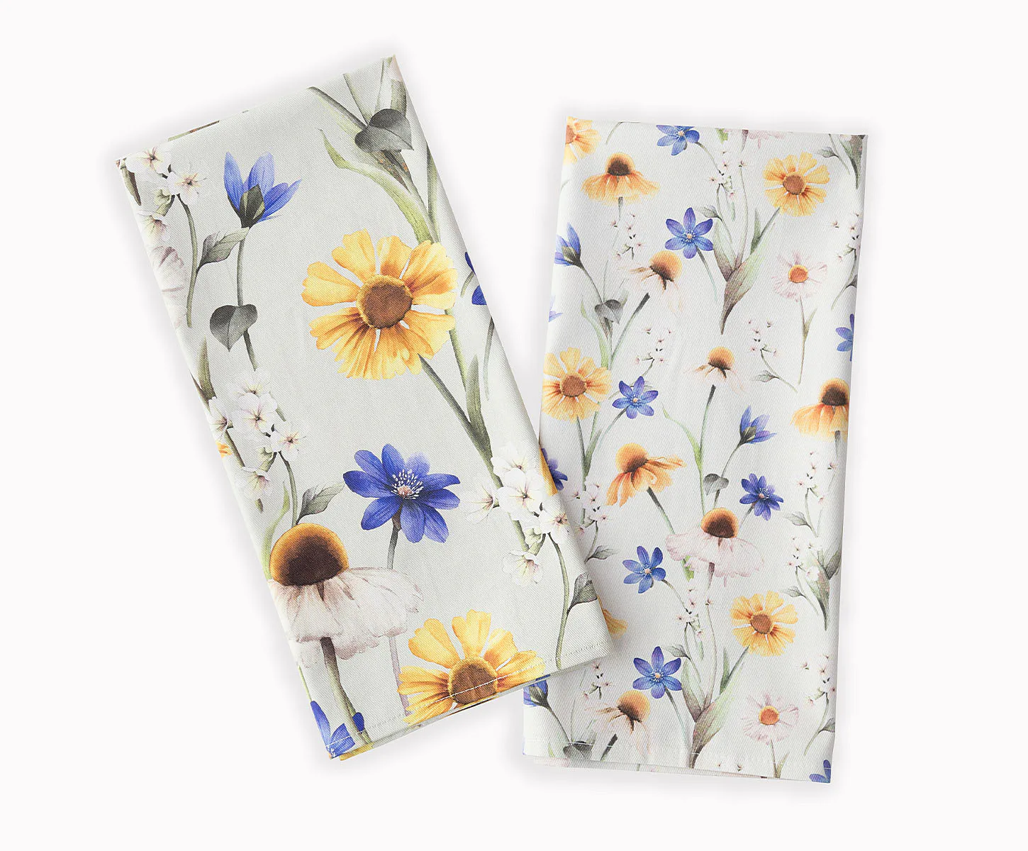 Potisk: jednostranný, obě utěrky zachycují stejný florální motiv s odlišnou velikostí květin