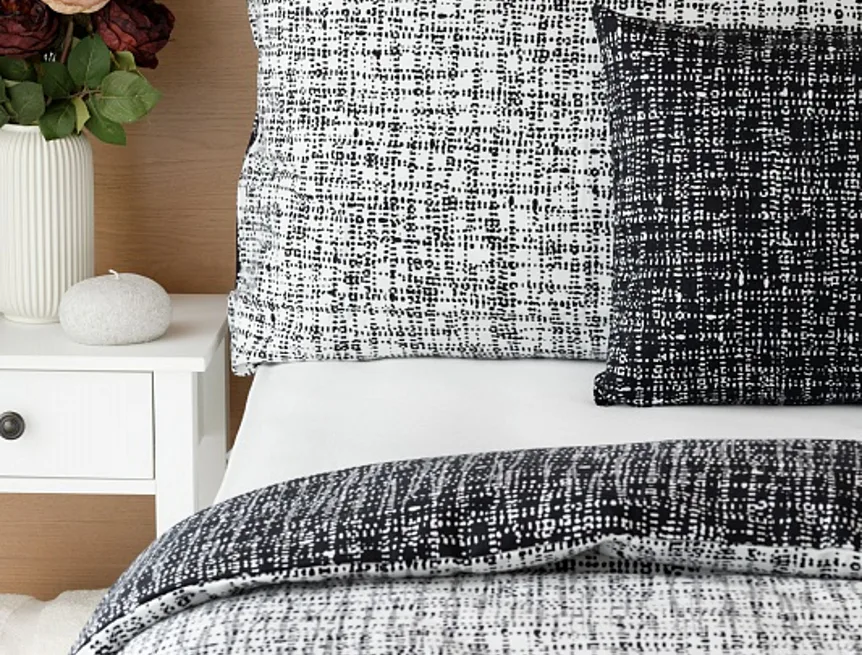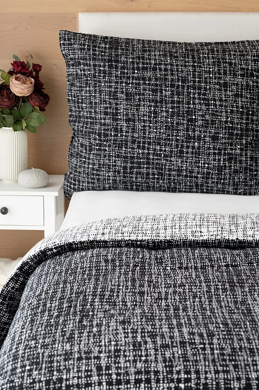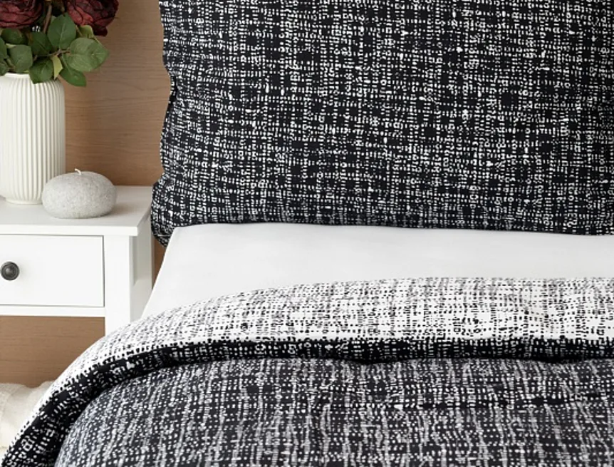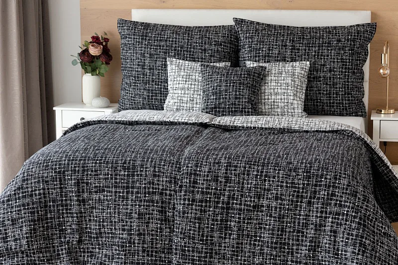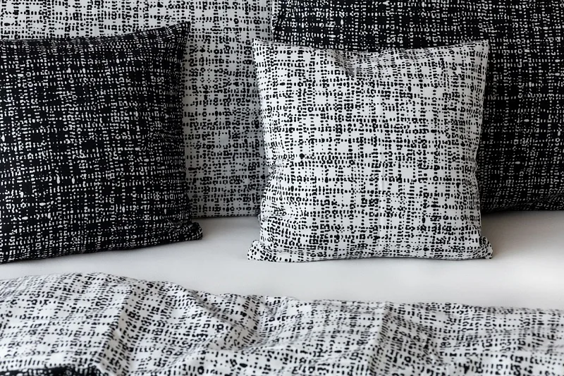 Úžasné, jednoduché, v nestarnúcej kombinácii čiernej a bielej. Vzor predstavuje miniatúru labyrintu.