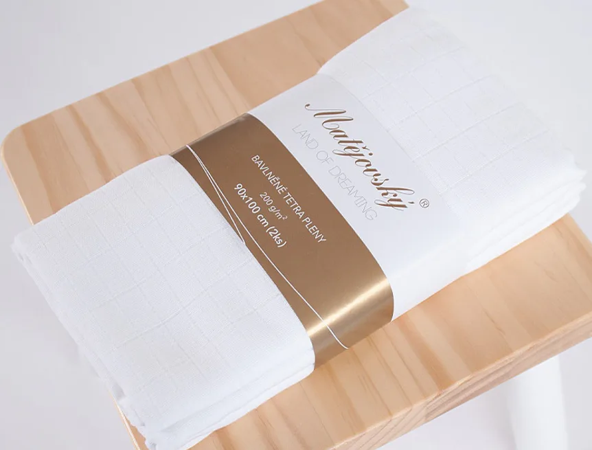 Vyrobili jsme pro Vás bavlněné tetra pleny s vysokou gramáží 200 g/m2. Dva okraje jsou pevné a dva jsou šité, zaručeno je precizní zpracování konfekce a tvarová stálost po praní.