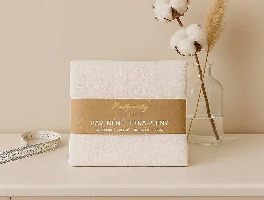 Vyrobili jsme pro Vás bavlněné tetra pleny s vysokou gramáží 200 g/m2. Dva okraje jsou pevné a dva jsou šité, zaručeno je precizní zpracování konfekce a tvarová stálost po praní.