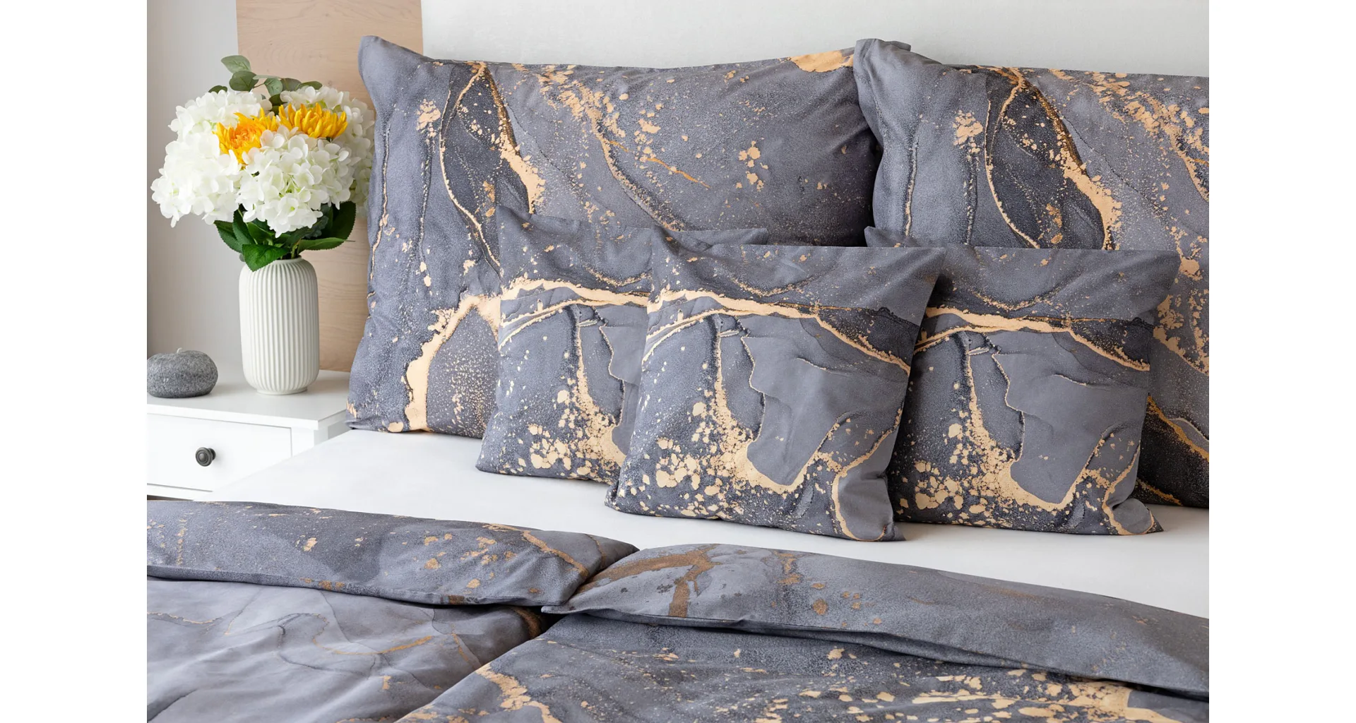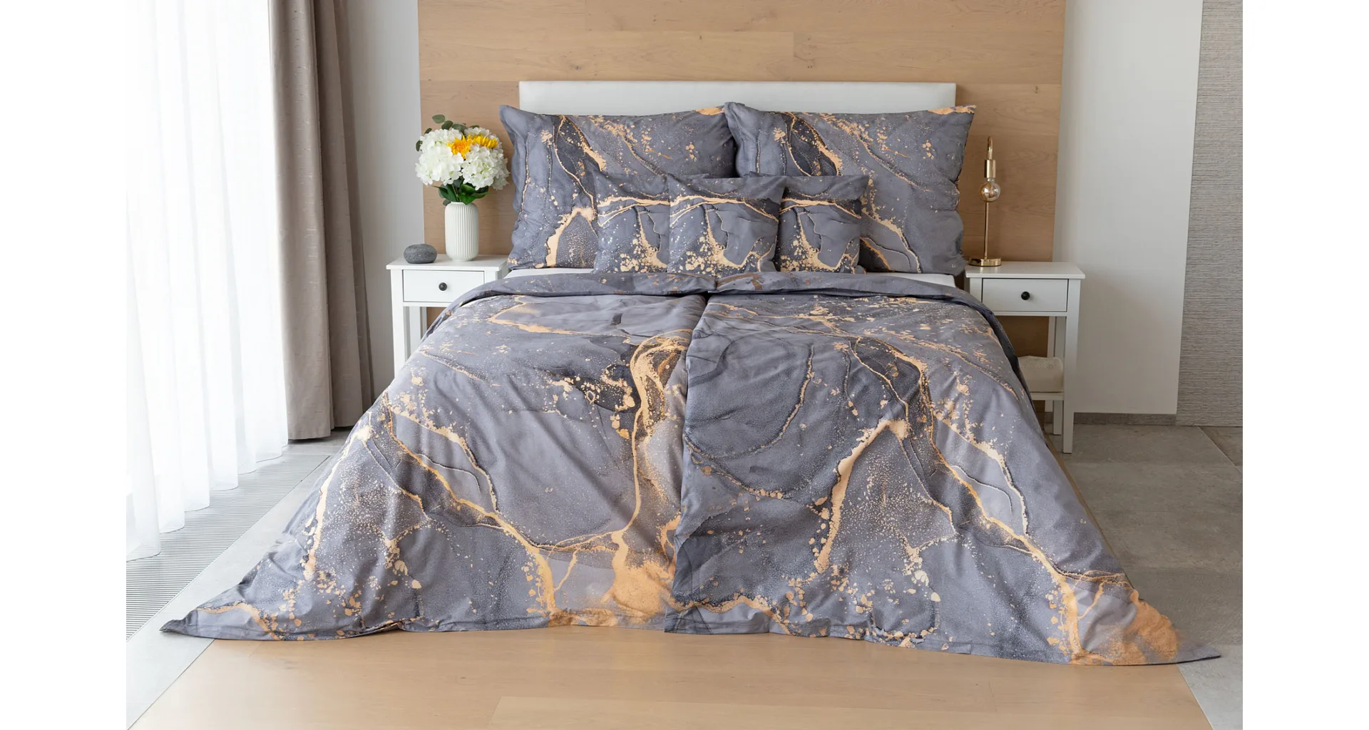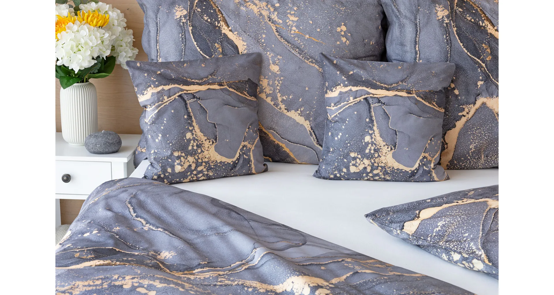 Posteľná bielizeň Laura upúta vašu pozornosť na prvý pohľad. Je dokonalá. V mramorovom vzore sa snúbia odtiene prírodnej šedej s hrejivou paletou béžových, pieskových a zlatistých tónov. O precízne spracovanie tohto harmonického vzoru sa postarala najmodernejšia digitálna tlačová technológia.