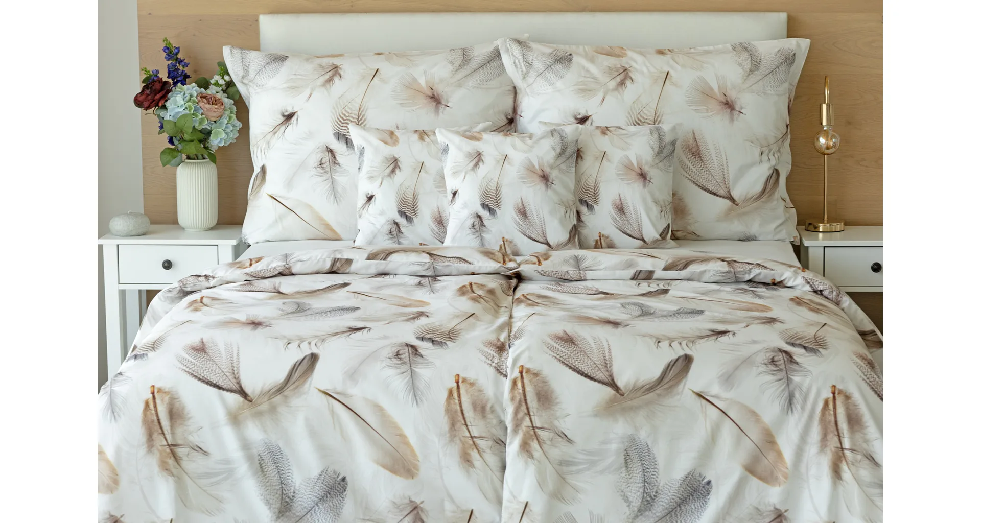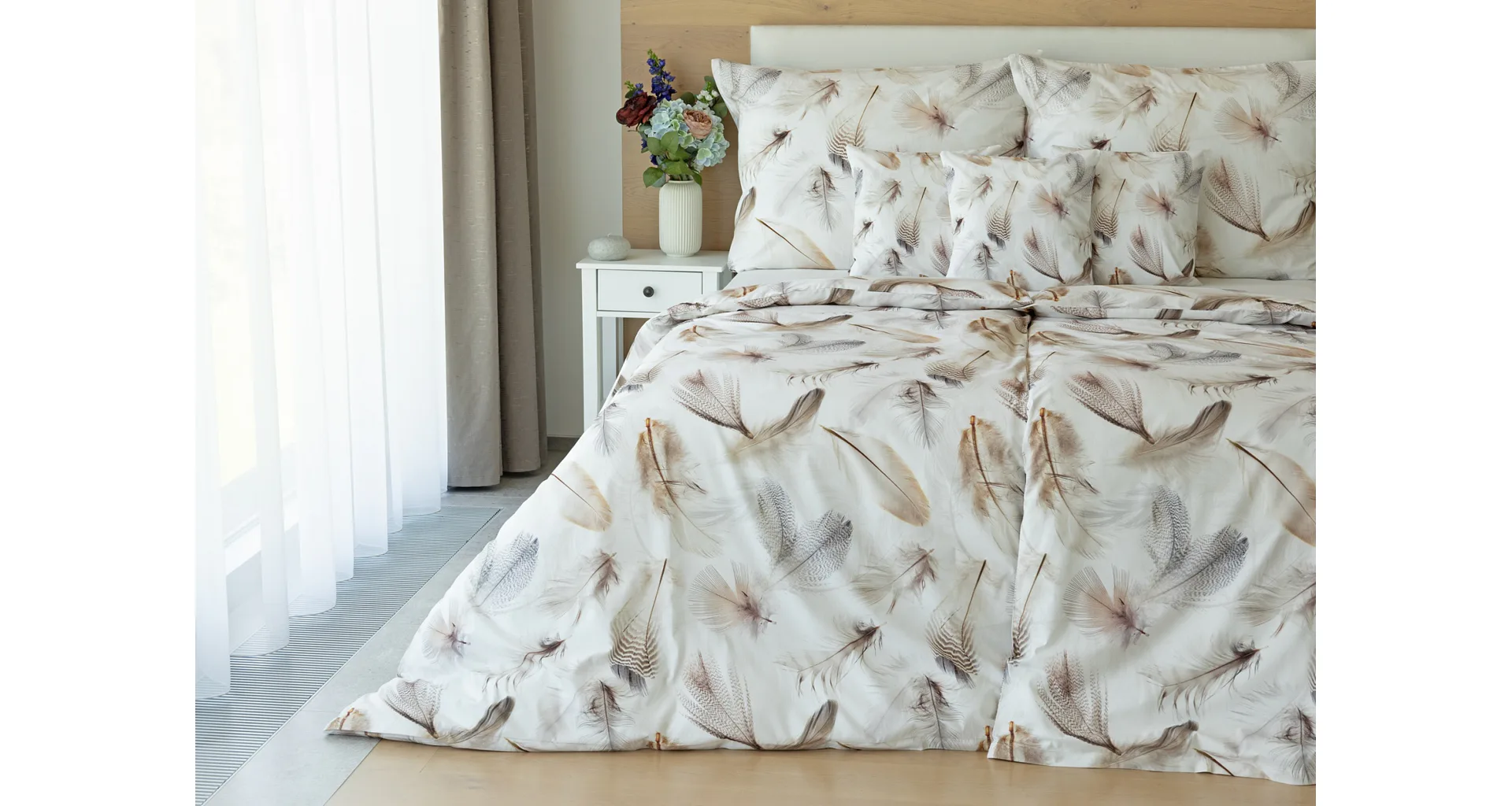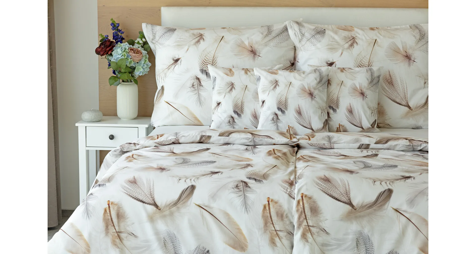 Bavlna ľahká a hebká ako perie, na dotyk aj na pohľad. Túto predstavu splnia obliečky Liberty. Po celej ploche v krémovo bielom odtieni sú posiate hnedým a šedým perím, ktoré vyniká v precíznom detaile vďaka najmodernejšej digitálnej tlači.