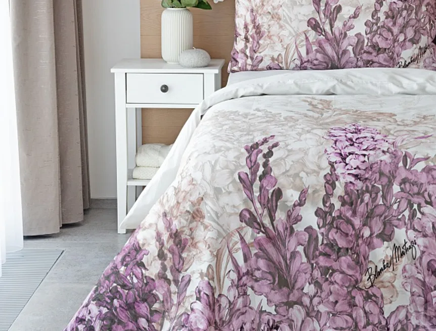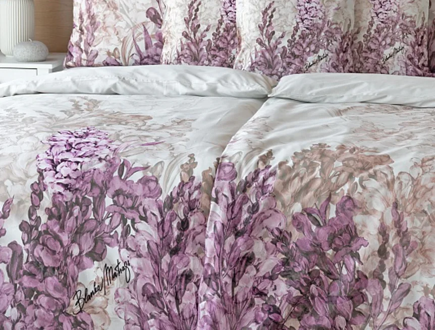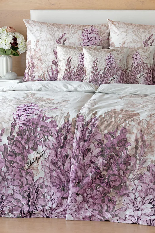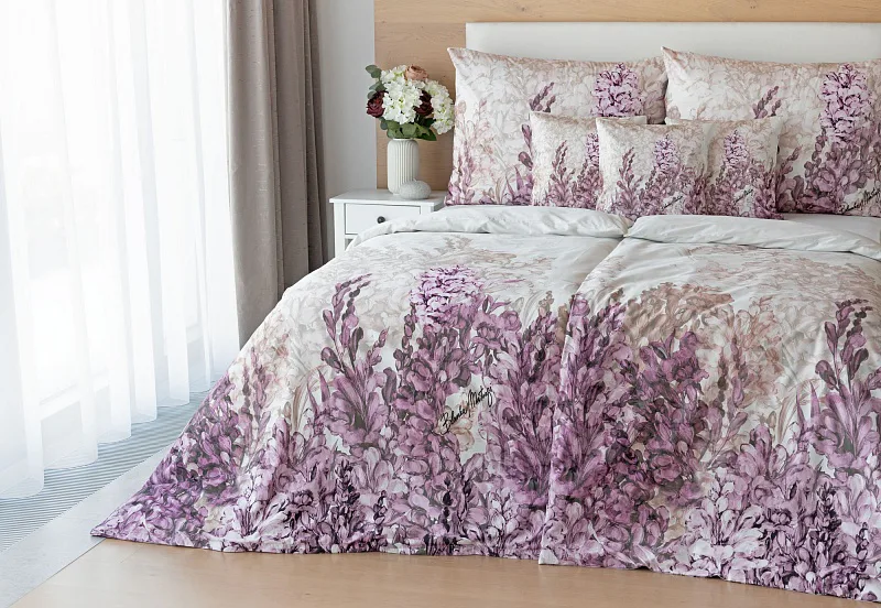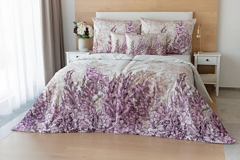 Romantický a nesmierne nežný vzor Lilac si vás získa na prvý pohľad. Autorská digitálne spracovaná maľba inšpirovaná orgovánom vnesie do vašej spálne harmóniu a pocit uvoľnenia. Užite si dokonalé súznenie fialových tónov a prepracované detaily, ktoré z luxusných obliečok robí osobité umelecké dielo.
