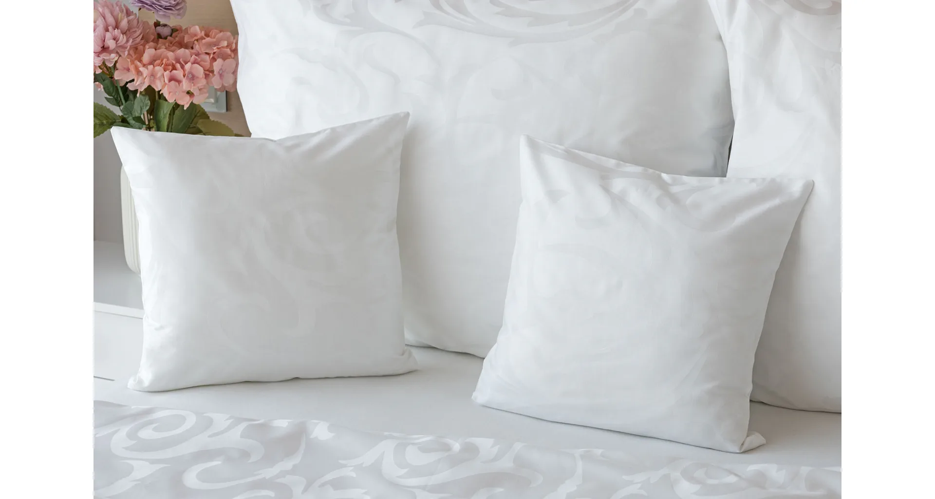 Jednofarebná obliečka na vankúš v prevedení damašek s vytkaným žakárovým vzorom. Obliečka je opatrená komfortným zipsovým uzáverom.