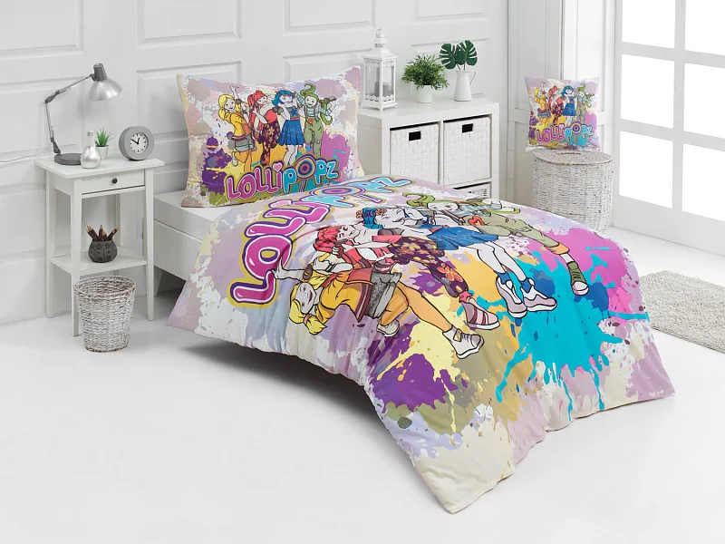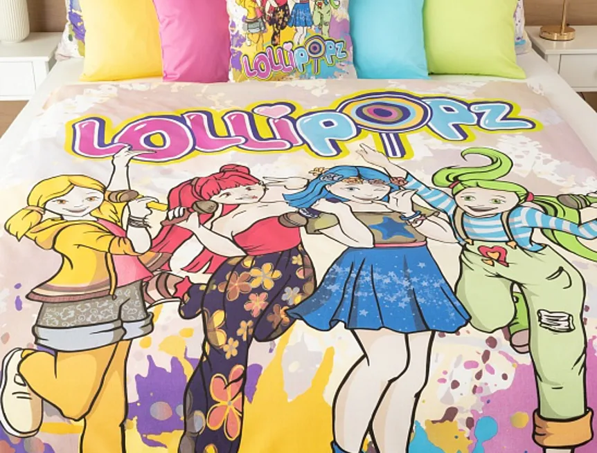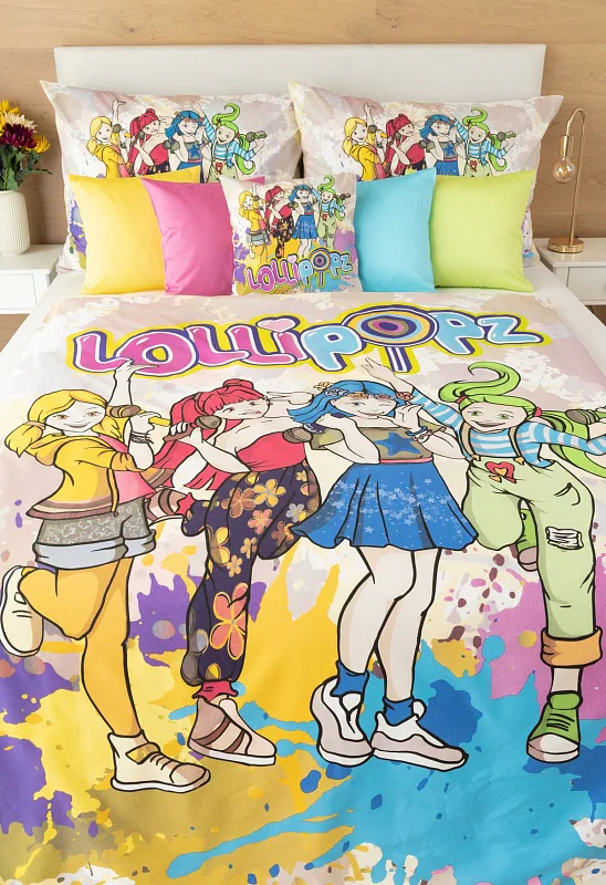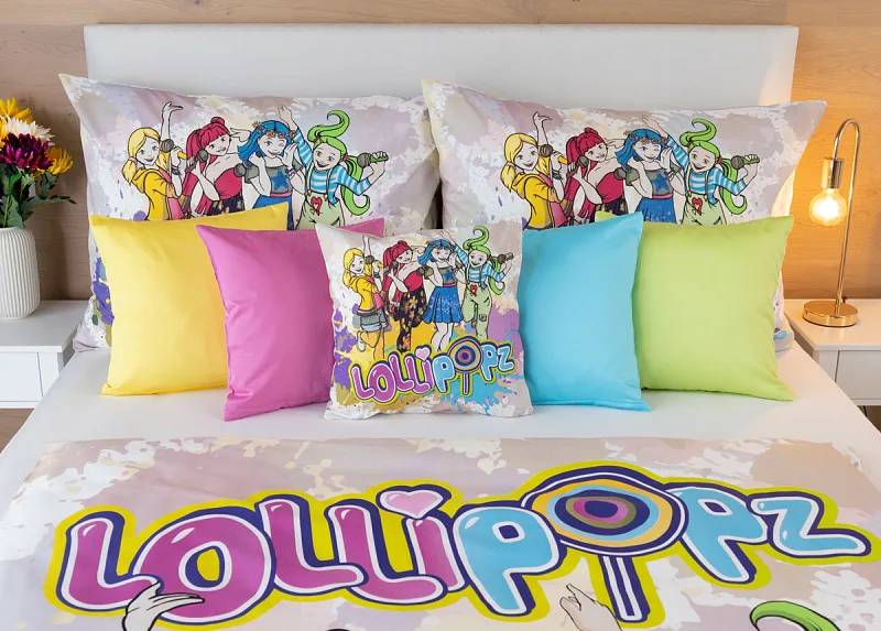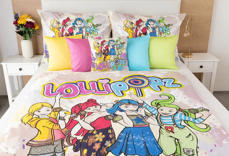 Z bavlnenej posteľnej bielizne s motívom českej hudobno-tanečnej skupiny Lollipopz budú vaše deti nadšené! Farebný vzor žiari energiou, rovnako ako veselá tvorba tejto obľúbenej dievčenskej štvorice.