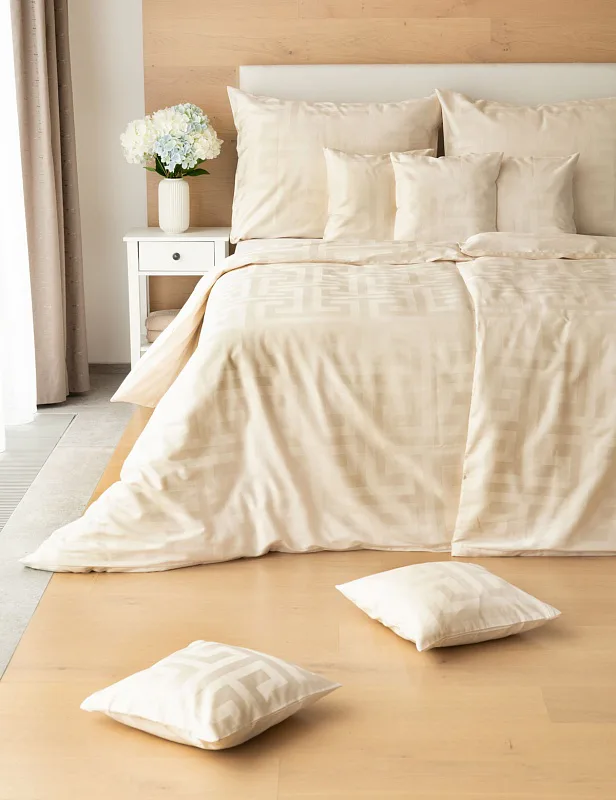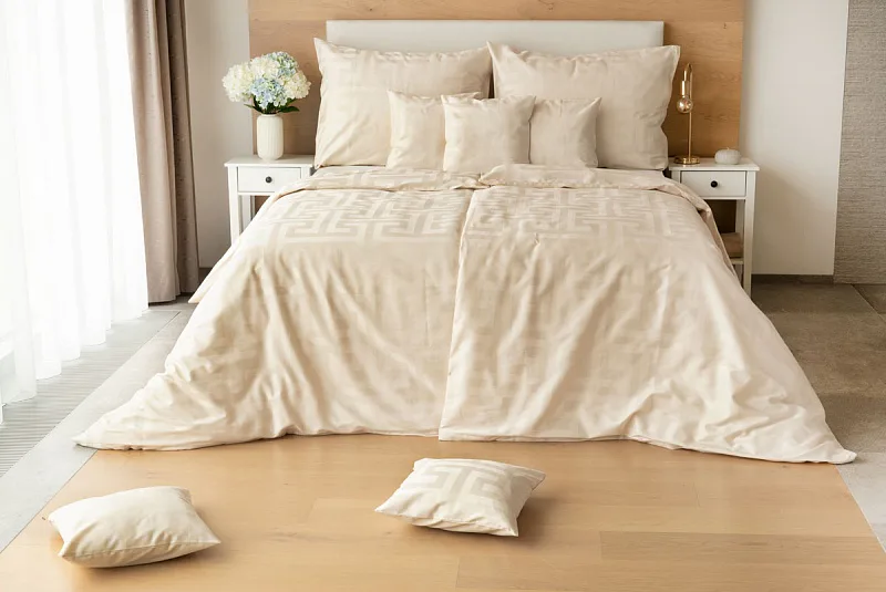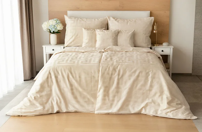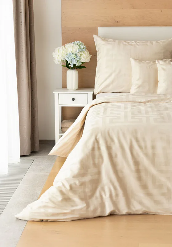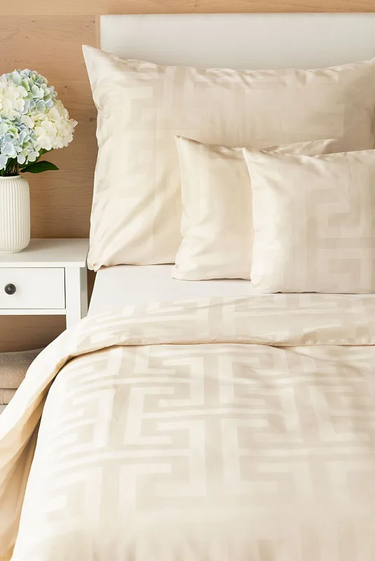 Nová kolekcia damaškových obliečok Louvre vás okúzli originálnym žakarovým vzorom a starostlivo vybranými prírodnými farbami. Vychutnajte si kráľovský komfort a pocit prepychu každú noc s obliečkami Louvre Cream v odtieni prírodne krémovej farby.