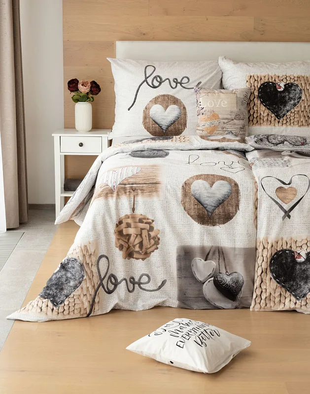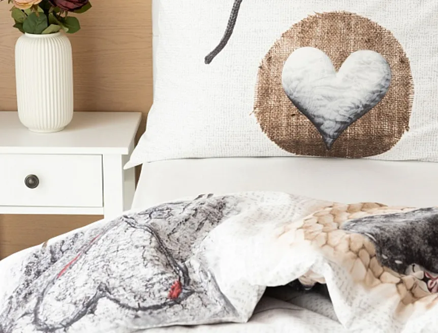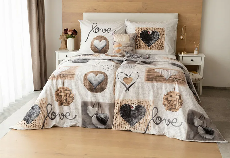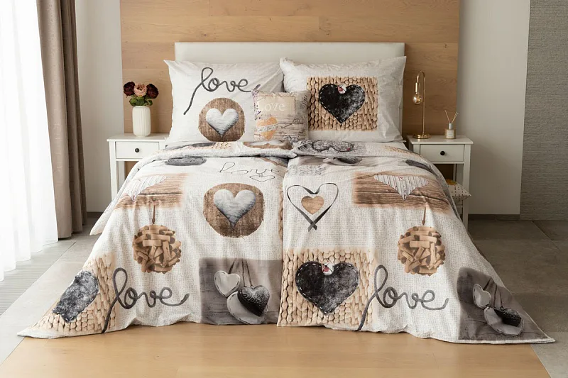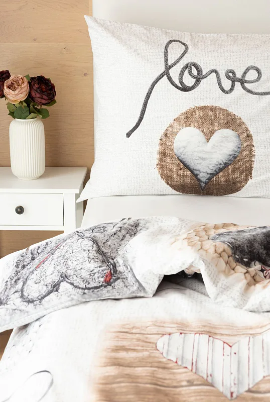 Romantický dezén s prírodnými motívmi vynikne v podaní posteľnej bielizne LUCKY. Na bielo-sivom základe sú hravo zachytené variácie na tému srdce. Obliečka na prikrývku je z oboch strán rovnaká. Vankúš 70/90 je z každej strany iný (zodpovedá fotografii). Posteľná bielizeň je vybavená komfortným zipsovým uzáverom.
