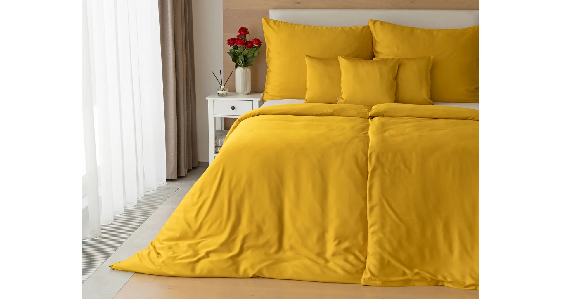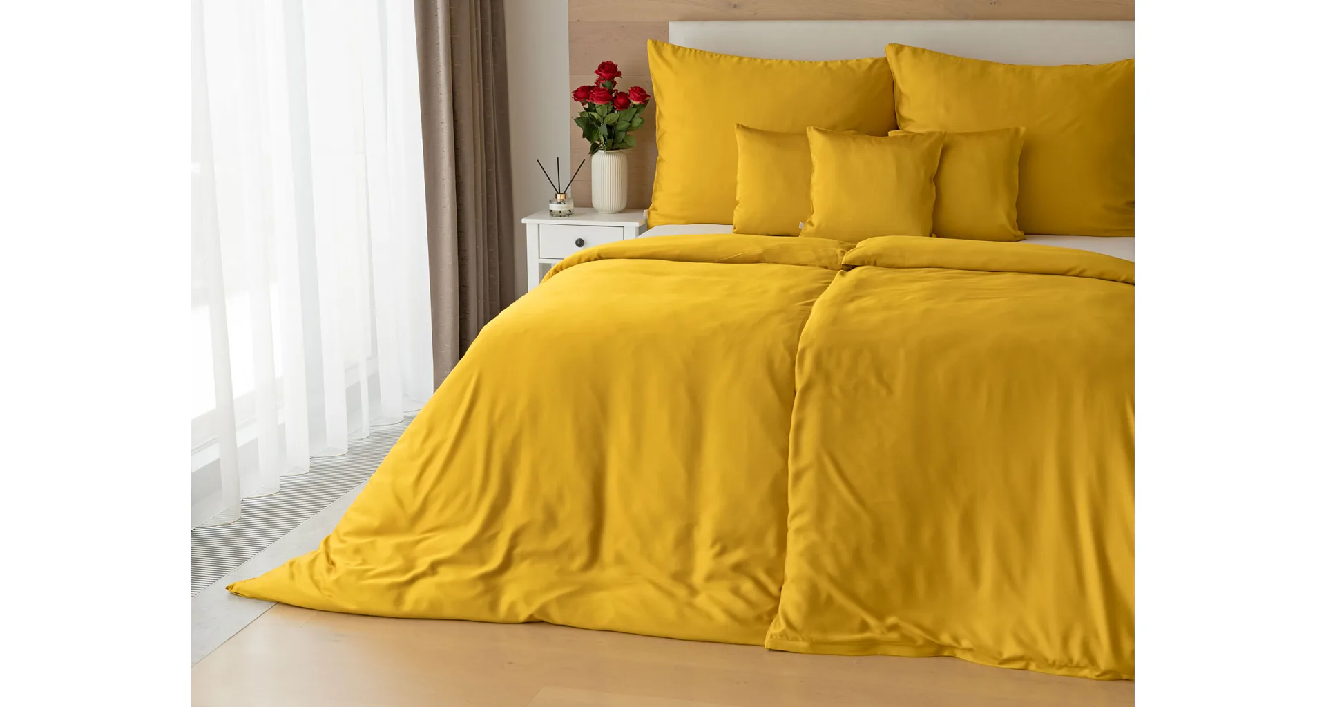 Dotknite sa nového rozmeru pohodlia a doprajte sebe aj svojej spálni luxusné obliečky Luna zo 100% bambusovej priadze. Hebký a jemný prírodný materiál ocenia milovníci zdravého a kvalitného spánku. Hladké jednofarebné prevedenie okúzli priaznivcov čistého dizajnu. Vďaka benefitom bambusového vlákna vám bambusový satén poskytne komfort po celý rok. Obliečky Luna dobre udržujú teplo a skvele absorbujú vlhkosť. Prirodzený lesk v spojení s hrejivým a atraktívnym medovo žltým odtieňom vnesie do každodennosti sviežu noblesu. Prirodzená krčivosť jemných vlákien dodá vašej spálni nádych nedbalej elegancie.