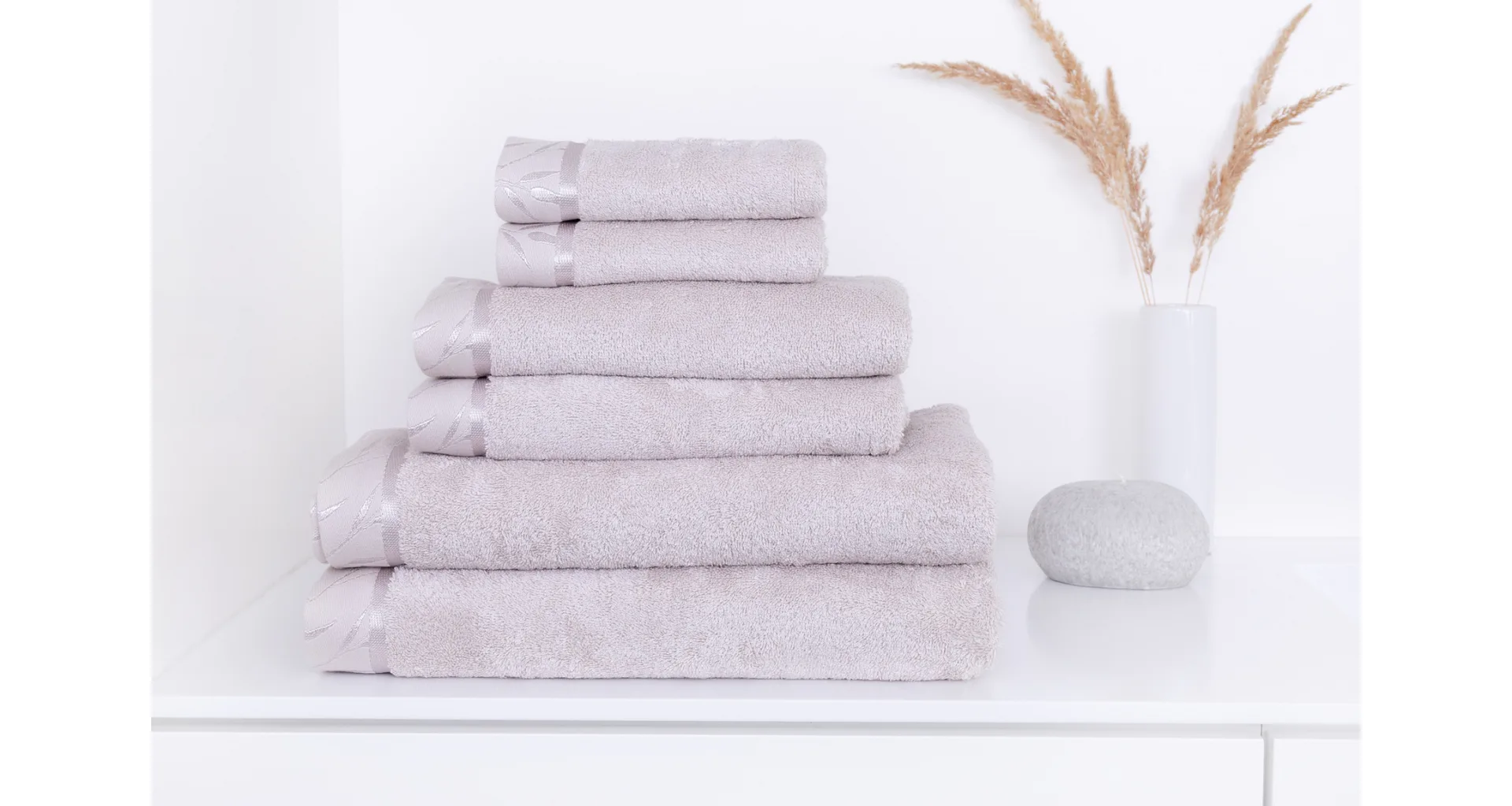 Pre kolekciu uterákov a osušiek Luna starostlivo vyberáme atraktívne odtiene. Noblesa tejto wellness rady je dotiahnutá k dokonalosti jemnou vyšívanou bordurou s motívom bambusových lístkov.