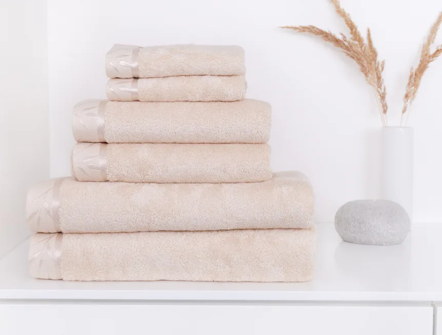 Pre kolekciu uterákov a osušiek Luna starostlivo vyberáme atraktívne odtiene. Noblesa tejto wellness rady je dotiahnutá k dokonalosti jemnou vyšívanou bordurou s motívom bambusových lístkov.