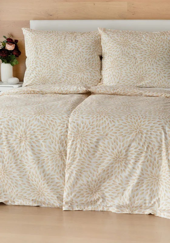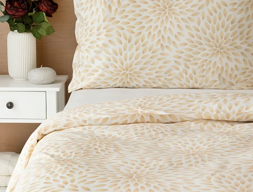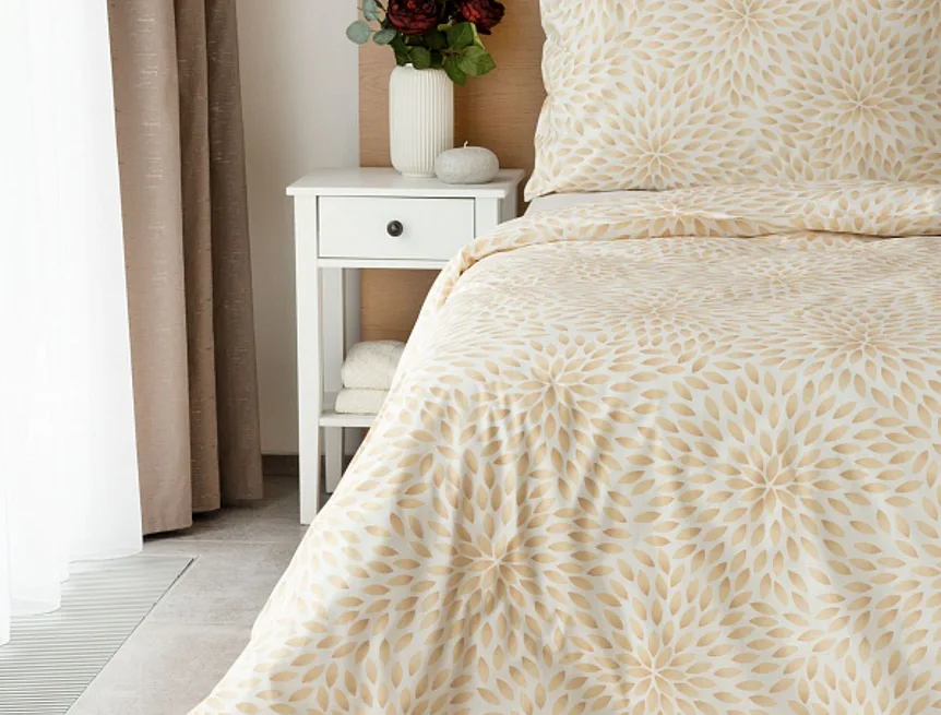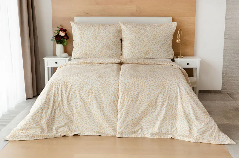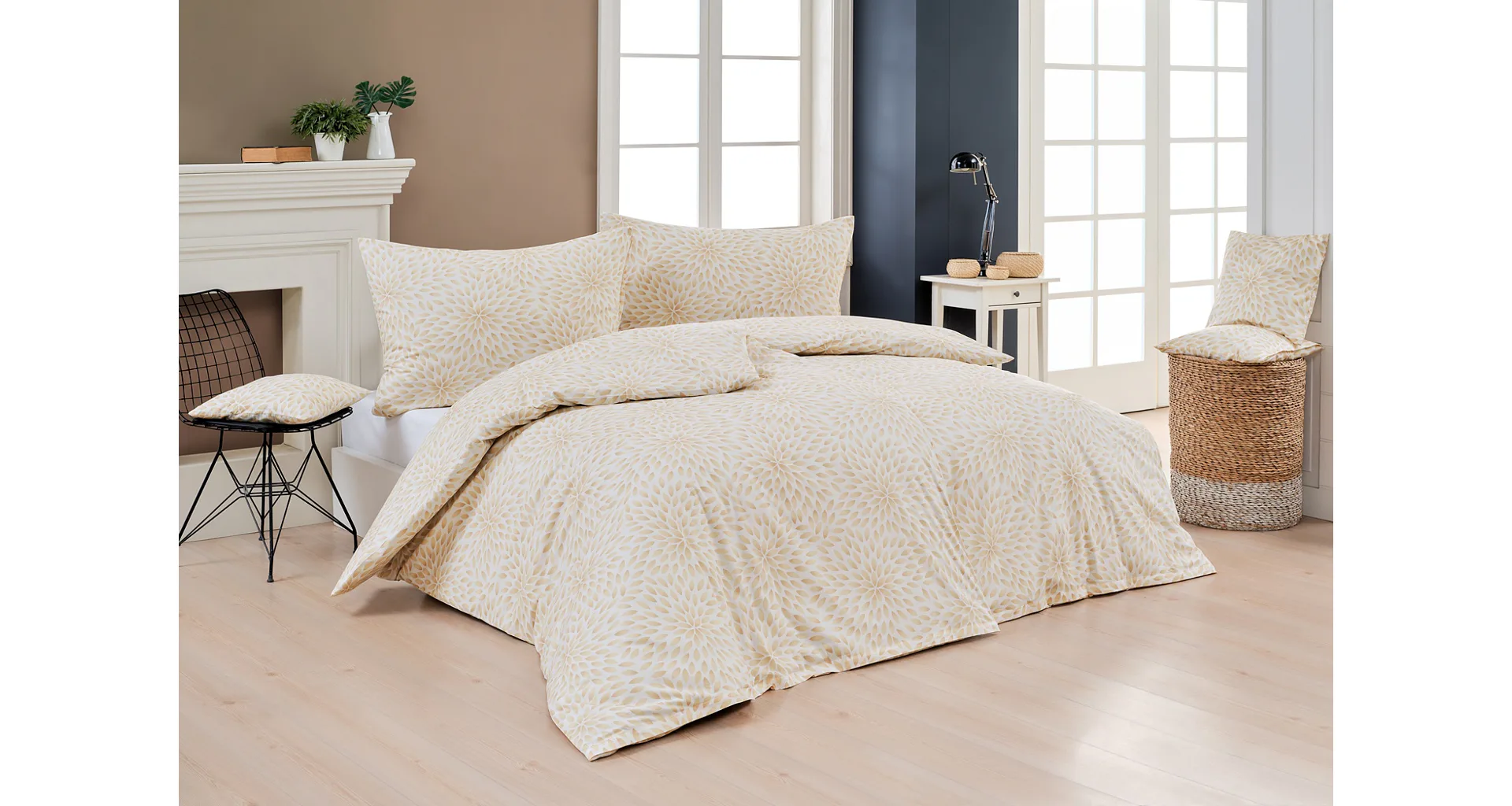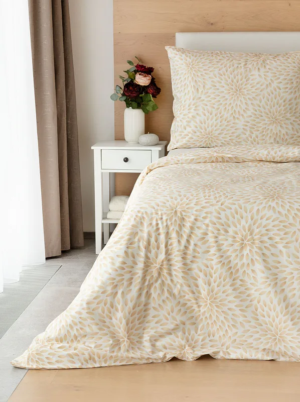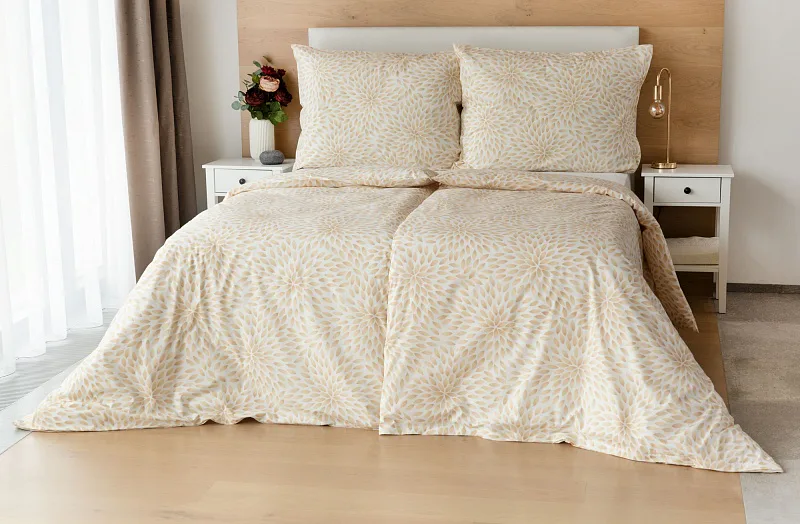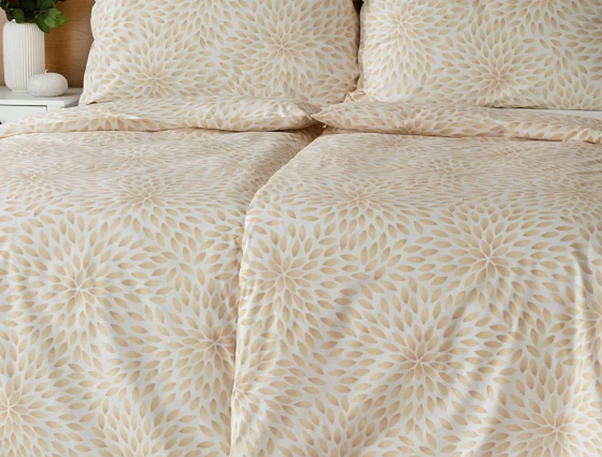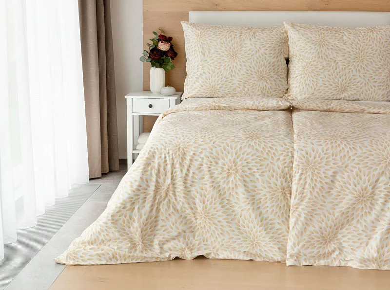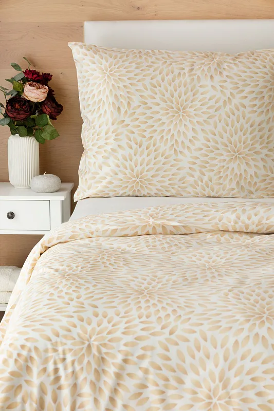 Nadchnite sa pre čistý vzhľad vašej spálne s očarujúcimi bavlnenými obliečkami Magnolia. Motív béžových kvapiek s decentným tieňovaním tvorí nenápadné obrazce kvetov postupne sa rozostupujúcich do celoplošného vzoru. Dokonalé spojenie hrejivých béžových tónov dopĺňa podklad v krémovo bielej farbe. A až sa dostatočne vynadívate, stači sa iba zachumlať do hebkej prvotriednej bavlny!