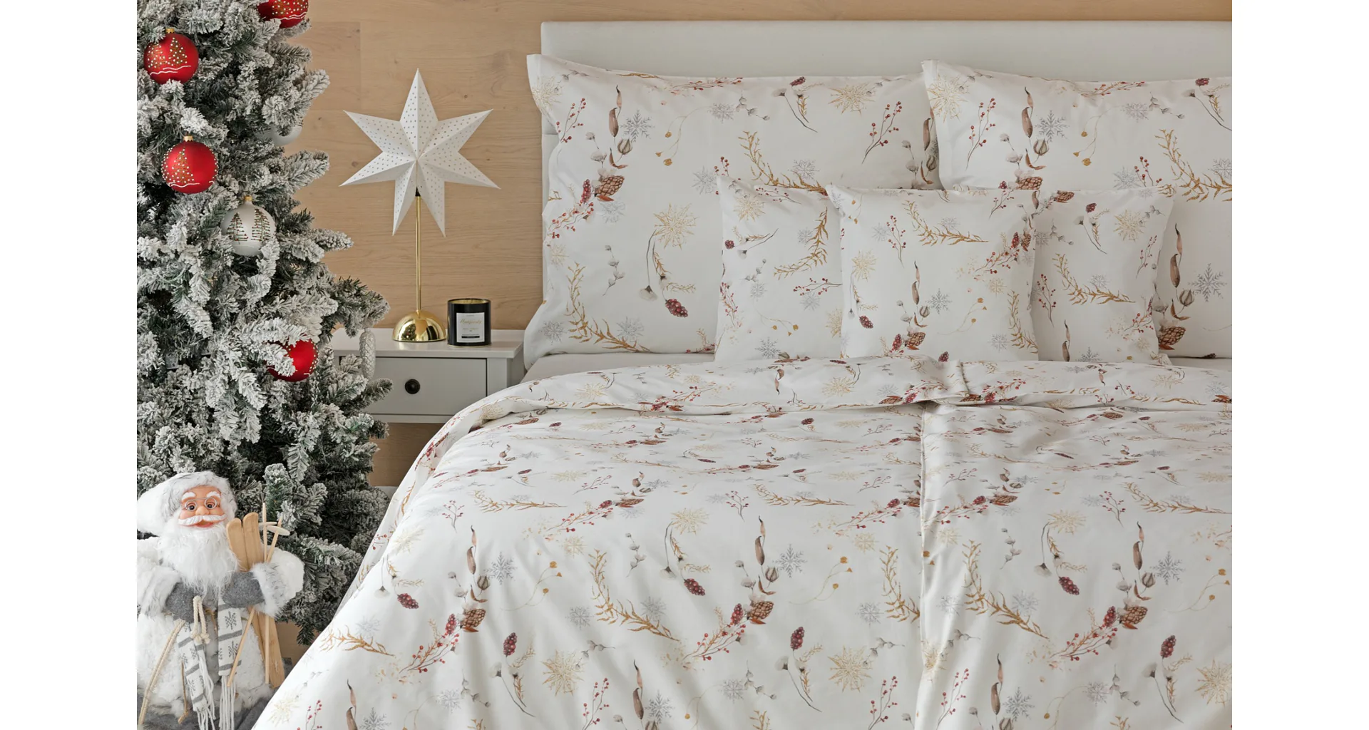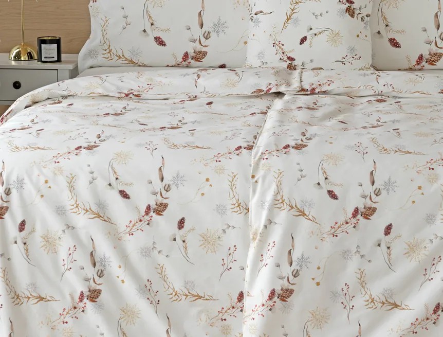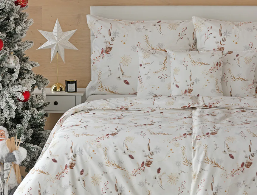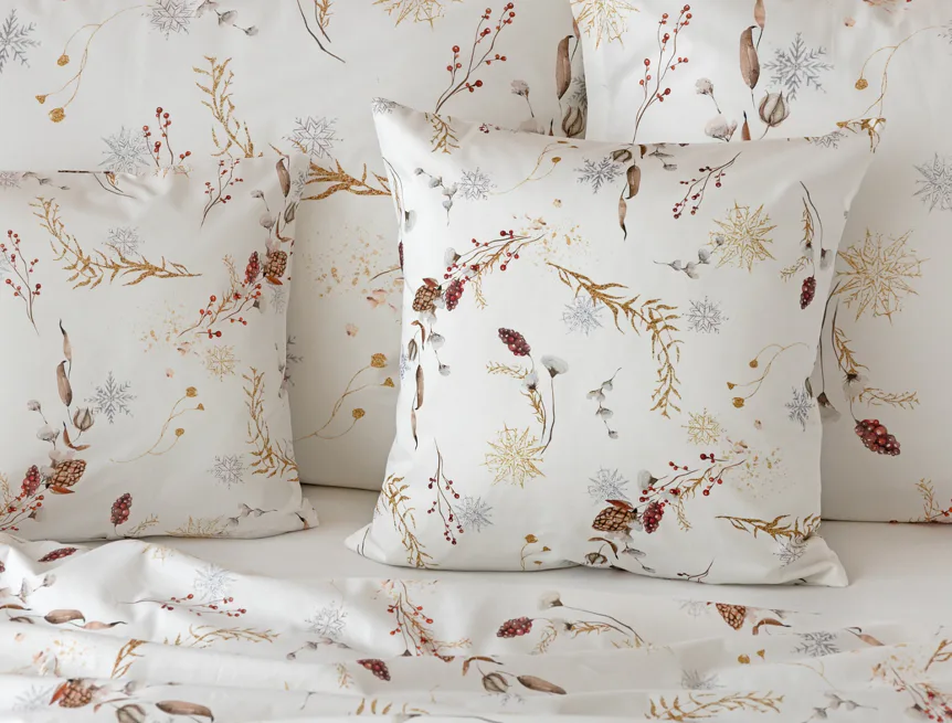 Nechajte zimu za oknom a doprajte si útulnú sviatočnú atmosféru v teple s elegantnými bavlnenými obliečkami Marlen. Snehovo biely podklad zdobí po celej ploche decentný motív šišiek a vetvičiek v palete hrejivých zlatohnedých a sviatočne červených tónov. Doplňte aroma difuzér s prírodnou vôňou, rozsvieťte lampičku a váš zimný večer bude nazabudnuteľný.