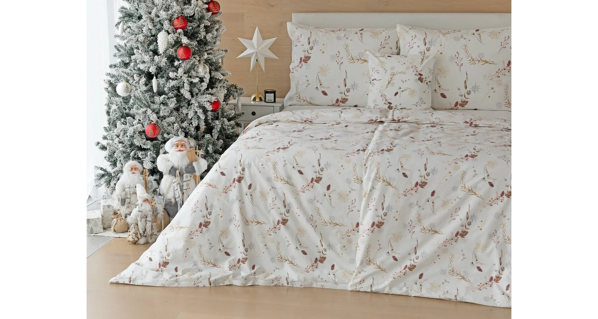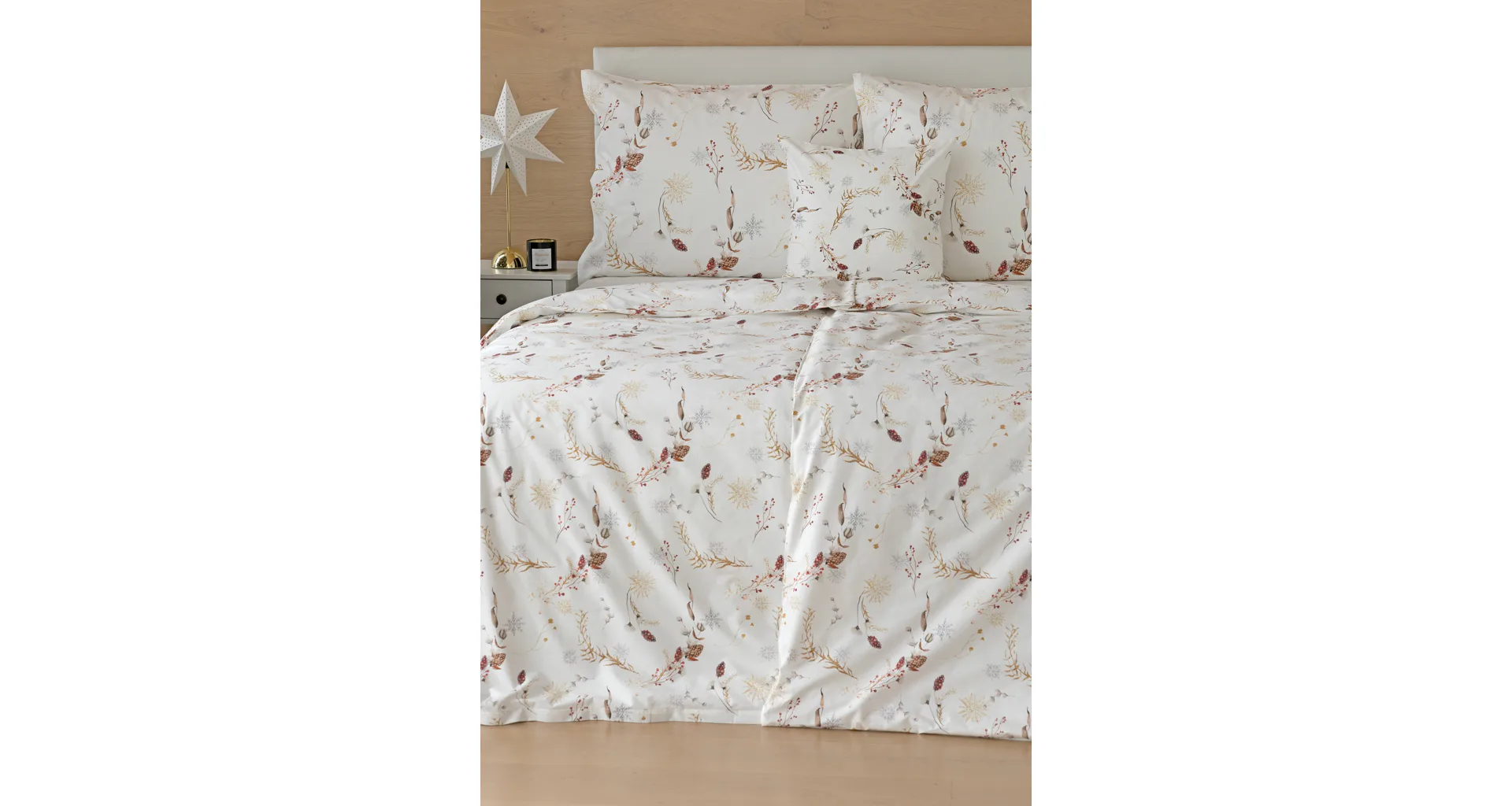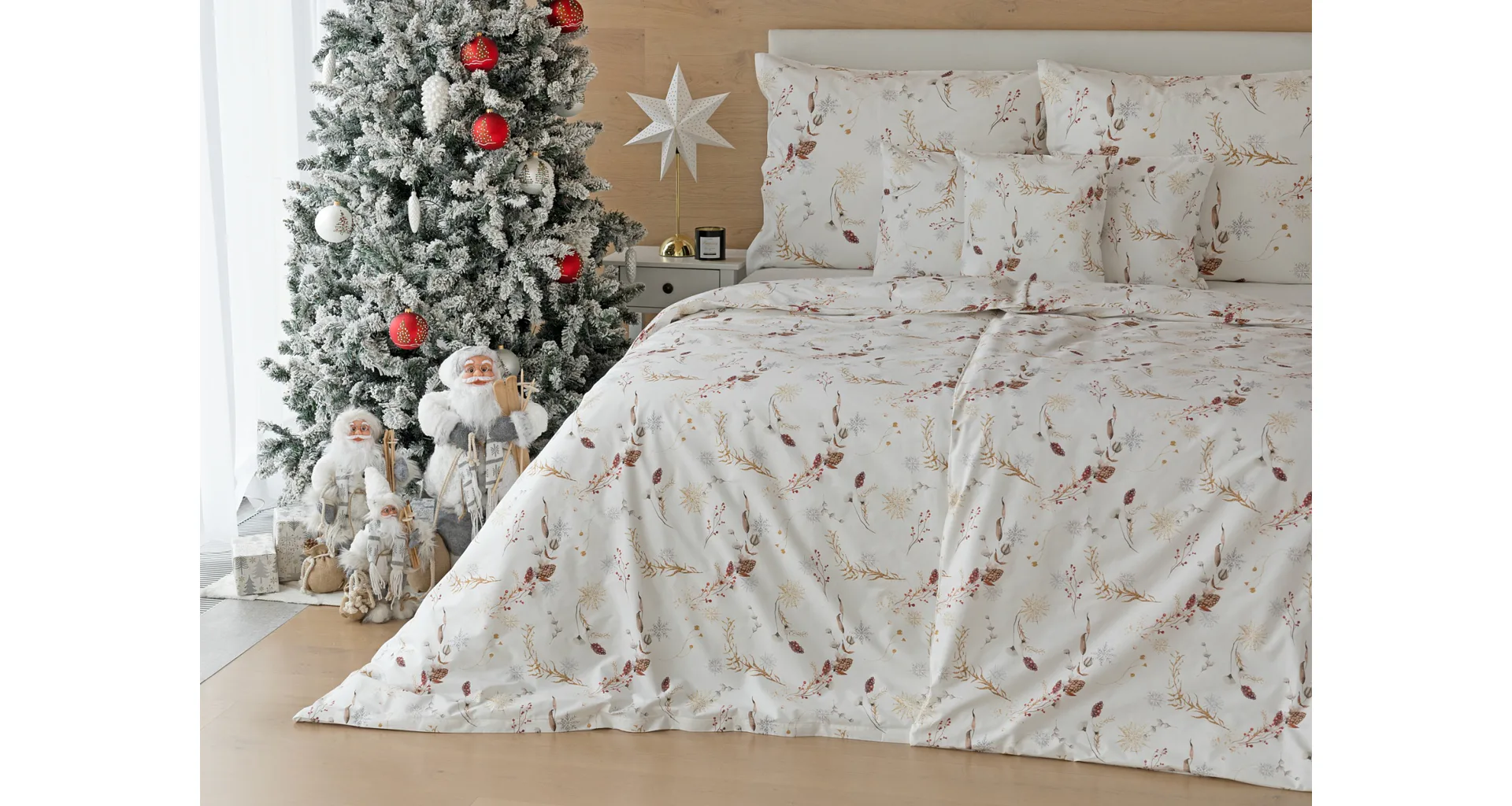 Nechajte zimu za oknom a doprajte si útulnú sviatočnú atmosféru v teple s elegantnými bavlnenými obliečkami Marlen. Snehovo biely podklad zdobí po celej ploche decentný motív šišiek a vetvičiek v palete hrejivých zlatohnedých a sviatočne červených tónov. Doplňte aroma difuzér s prírodnou vôňou, rozsvieťte lampičku a váš zimný večer bude nazabudnuteľný.