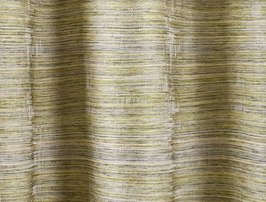 Látka má nepravidelnou proužkovanou strukturu, výsledná barevnost se skládá z perfektně sladěných odstínů krémové, šedé, olivové a trávově zelené. Látka je částečně zatemňující, nejedná se o blackout. Imitace jemně tkané přírodní struktury dodává nadčasovou eleganci.