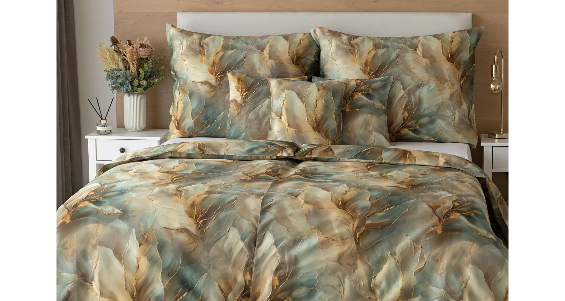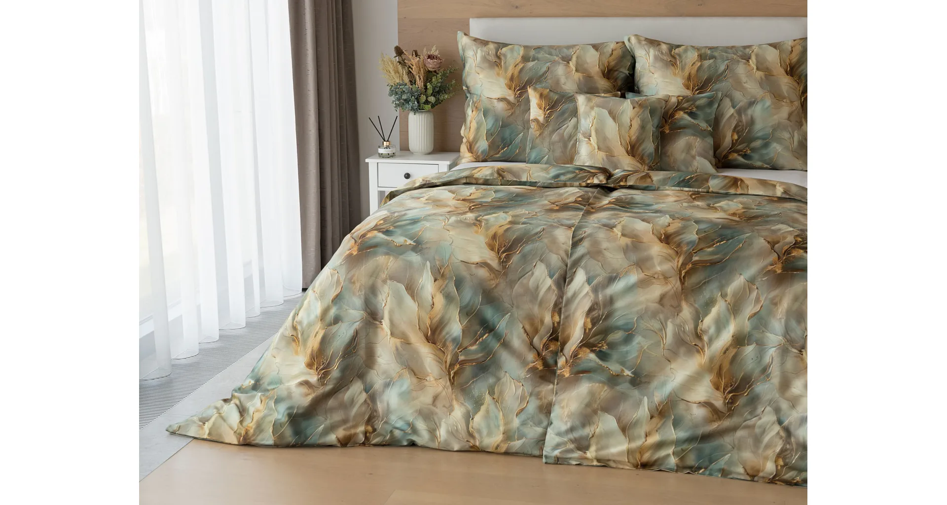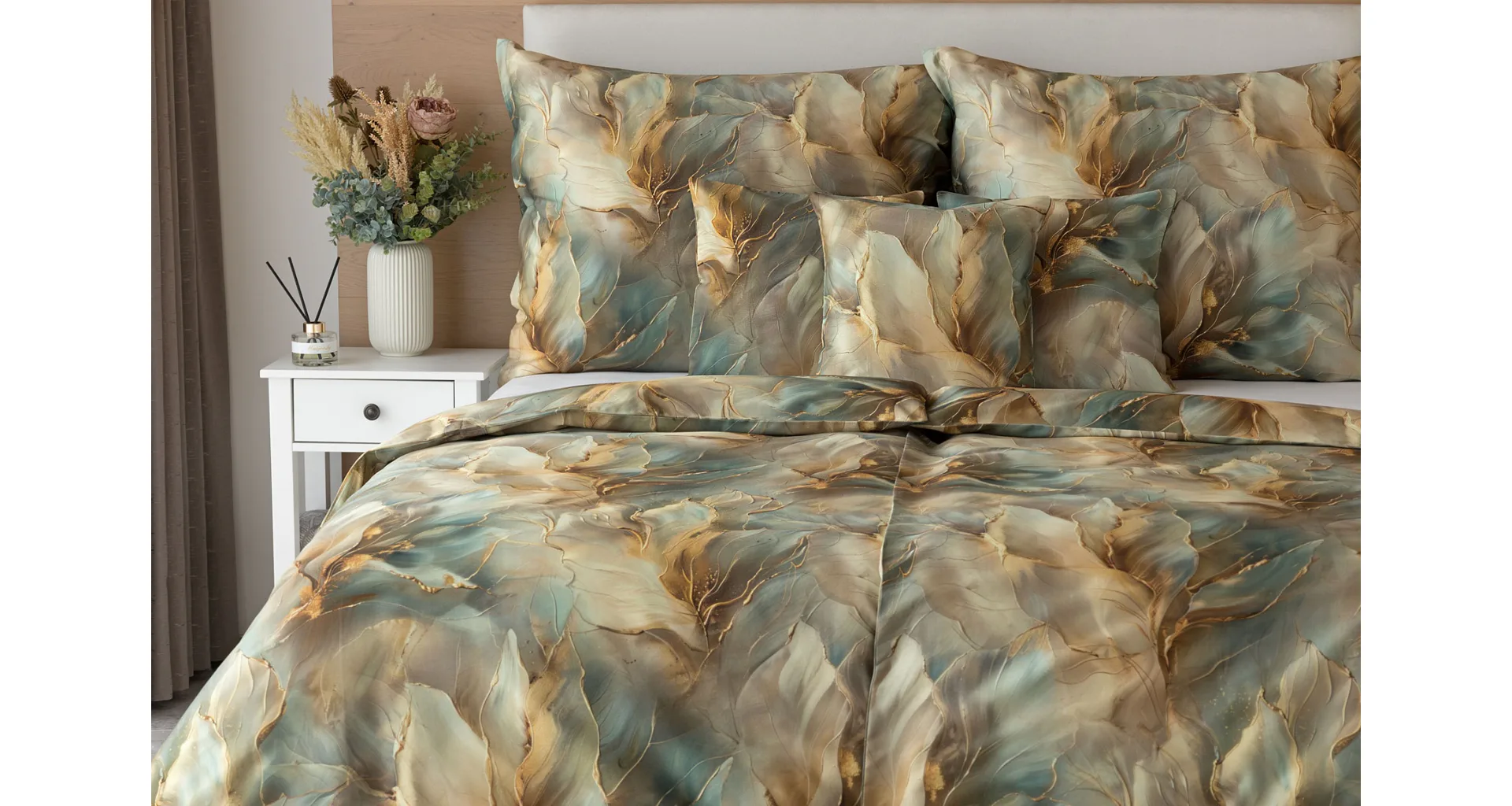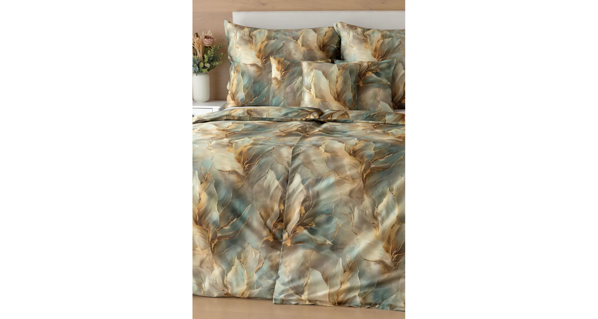 Doprajte svojej spálni štýl a eleganciu s bavlnenými obliečkami Monaco. V energickom, abstraktne-florálnom vzore, sa snúbia odtiene béžovej, hnedej a modrozelenej farby. Dokopy uzatvárajú magický celok, ktorý podtrhne krásu vašej spálne. O váš vysnívaný komfort sa postará hebký bavlnený satén vyrobený zo 100% bavlny.