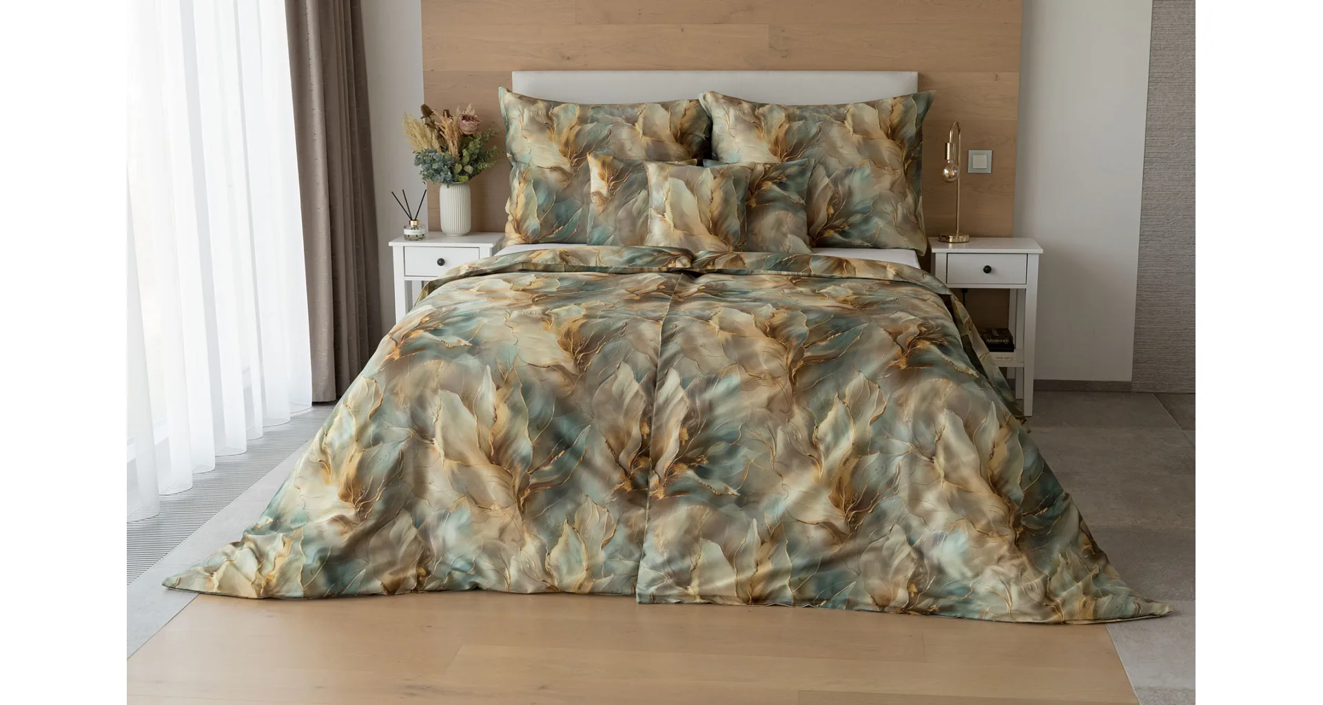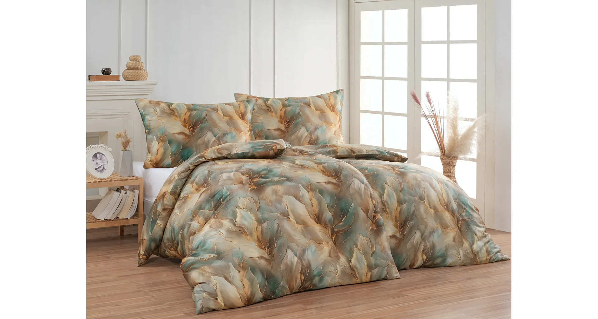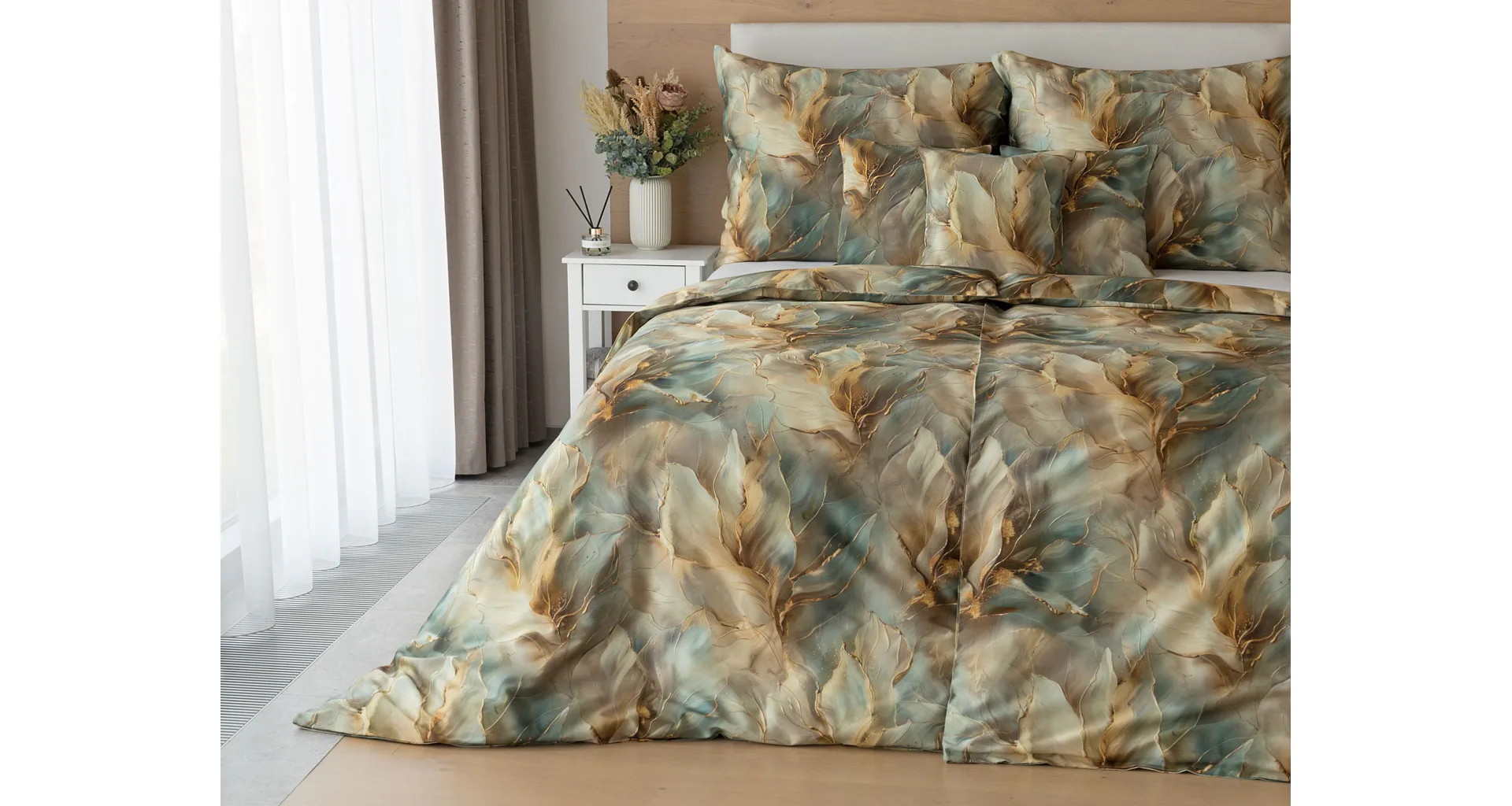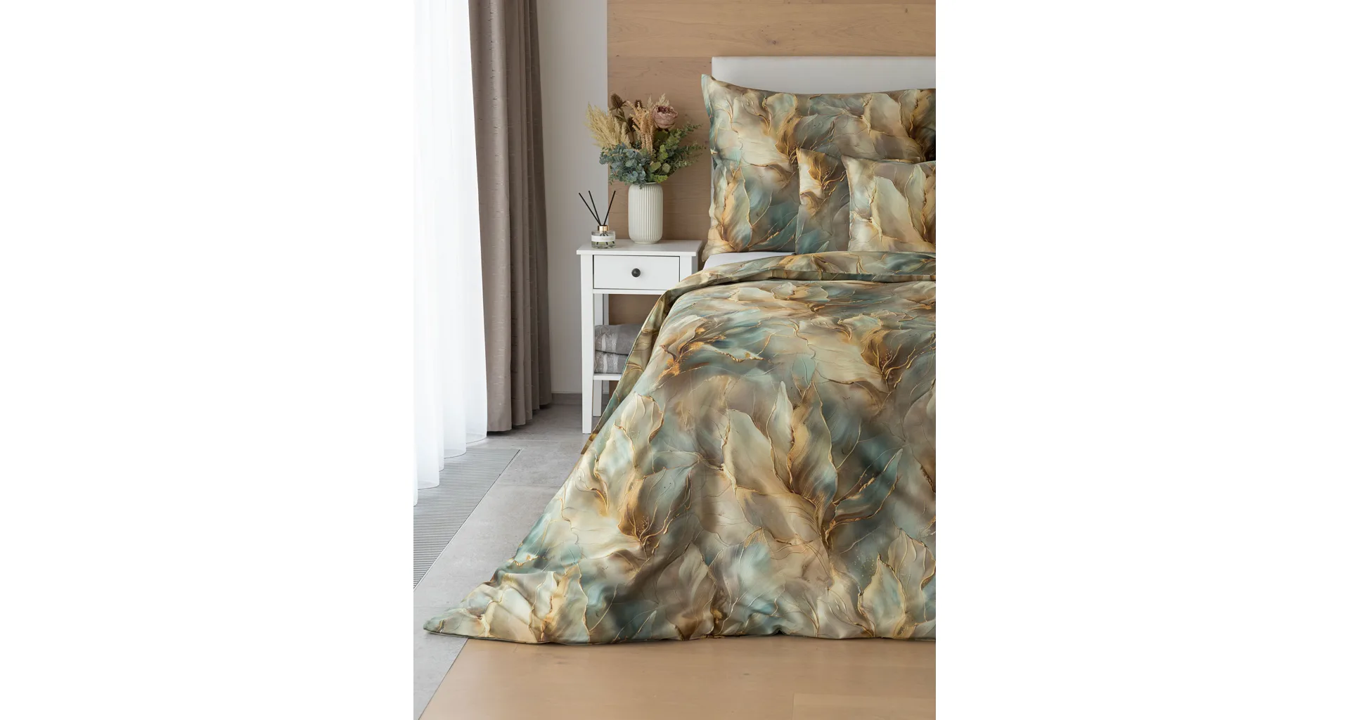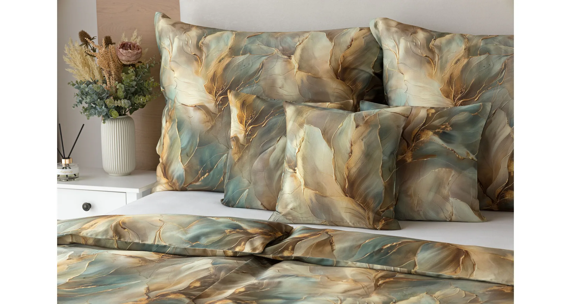 Doprajte svojej spálni štýl a eleganciu s bavlnenými obliečkami Monaco. V energickom, abstraktne-florálnom vzore, sa snúbia odtiene béžovej, hnedej a modrozelenej farby. Dokopy uzatvárajú magický celok, ktorý podtrhne krásu vašej spálne. O váš vysnívaný komfort sa postará hebký bavlnený satén vyrobený zo 100% bavlny.