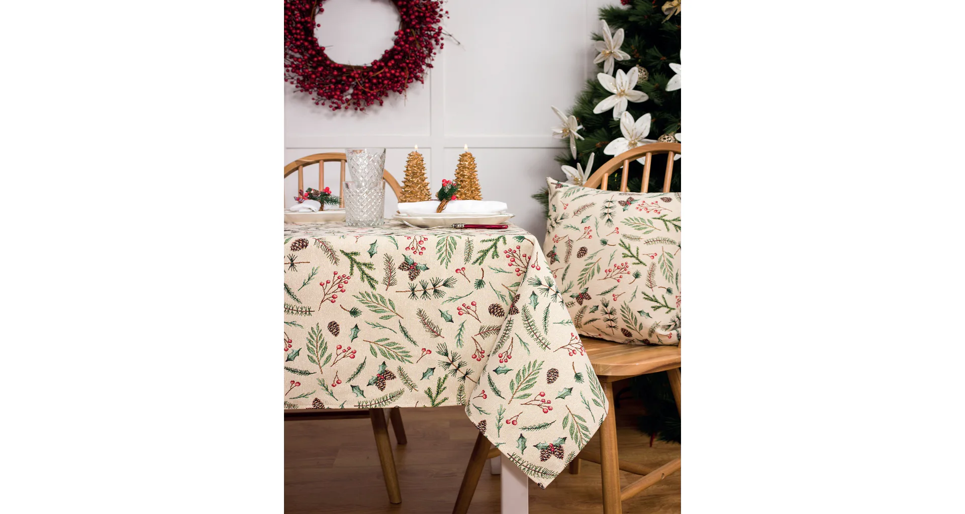 Gobelinové obrusy môžete hravo kombinovať s ďalšími doplnkami z tkaného materiálu. Inšpirujte sa ponukou odporúčaných produktov a vylaďte interiér podľa svojich predstáv,