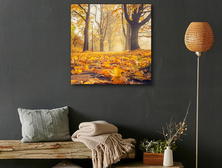 Dodejte interiéru nevšední atmosféru s obrazem Autumn Road . Vzor obrazu je vytištěn na prémiovém bavlněném plátně s nepravidelnou strukturou canwas PowerSol Satin. Povrch je odolný proti protržení a navíc dodává plátnu sametový vzhled. Obraz dodáváme již napnutý na dřevěném rámu, je opatřen závěsem pro umístění na stěnu.