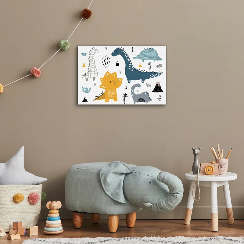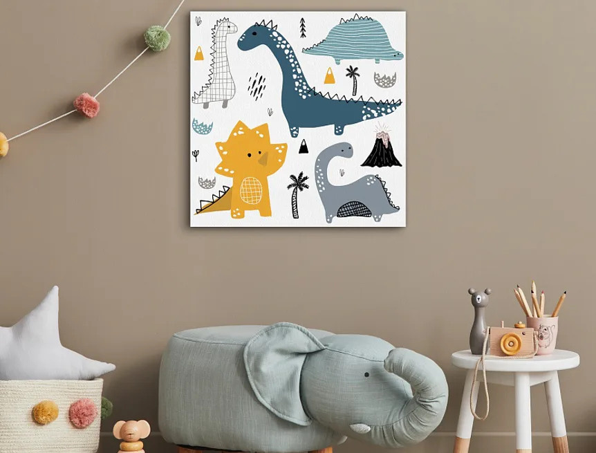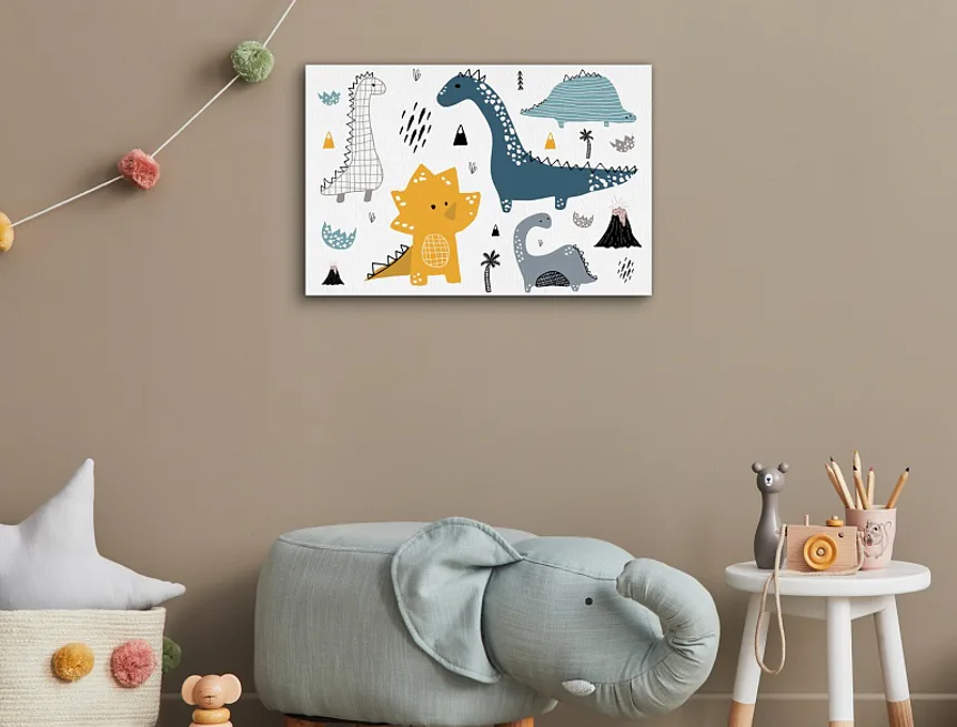 Dodejte interiéru nevšední atmosféru s obrazem Dinosauři. Vzor obrazu je vytištěn na prémiovém bavlněném plátně s nepravidelnou strukturou canwas PowerSol Satin. Povrch je odolný proti protržení a...