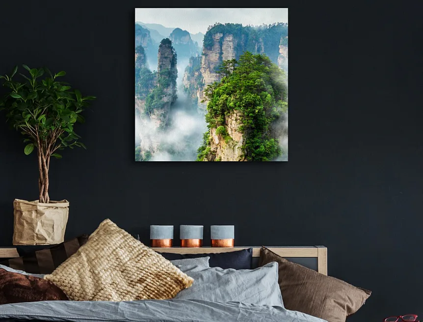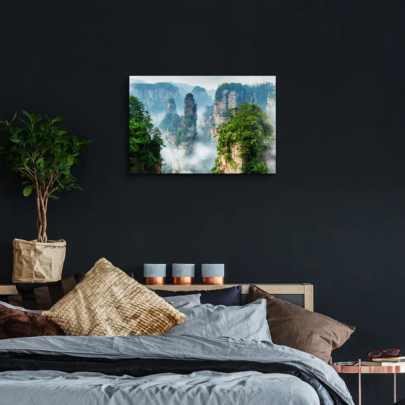 Dodejte interiéru nevšední atmosféru s obrazem Misty Mountains. Vzor obrazu je vytištěn na prémiovém bavlněném plátně s nepravidelnou strukturou canwas PowerSol Satin. Povrch je odolný proti protržení a navíc dodává plátnu sametový vzhled. Obraz dodáváme již napnutý na dřevěném rámu, je opatřen závěsem pro umístění na stěnu.