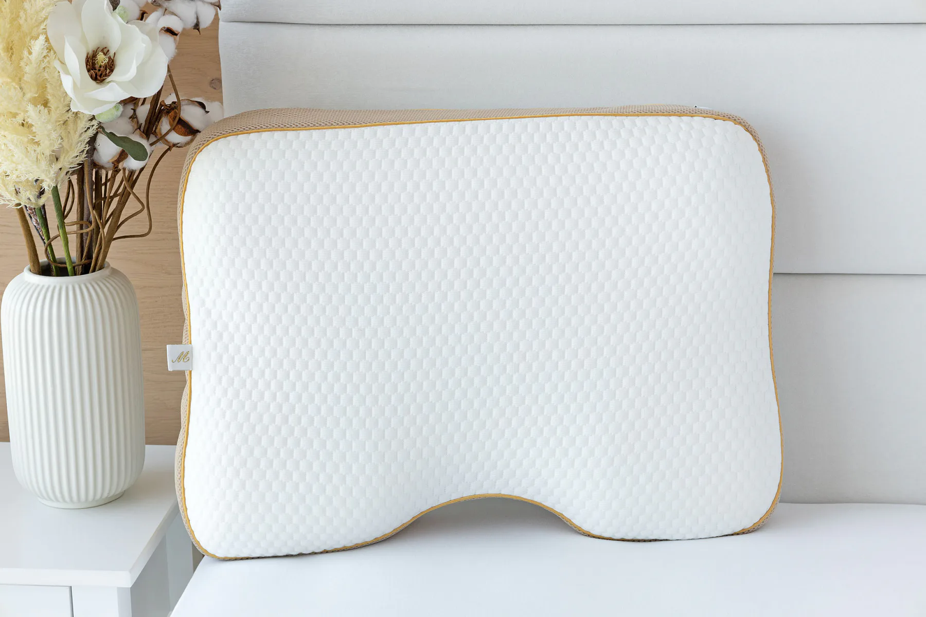 Povlékání: S ohledem na speciální tvar polštáře je lepší polštář nepovlékat, aby zůstal plně zachován jeho ergonomický tvar.