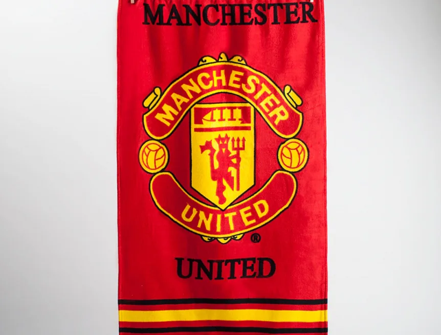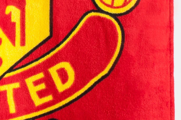 Kvalitní froté plážová osuška ze 100% bavlny. Červenožlutý sportovní motiv je jednostranný.