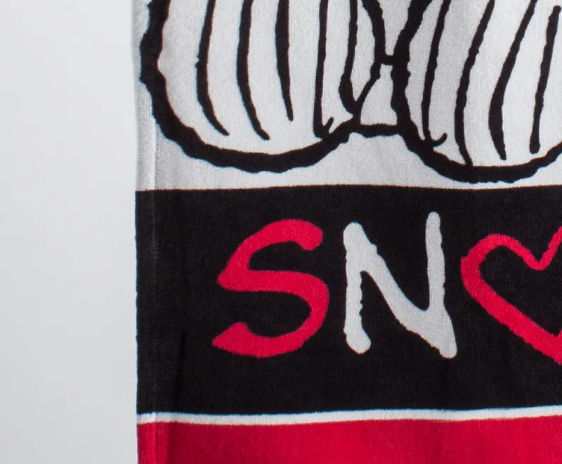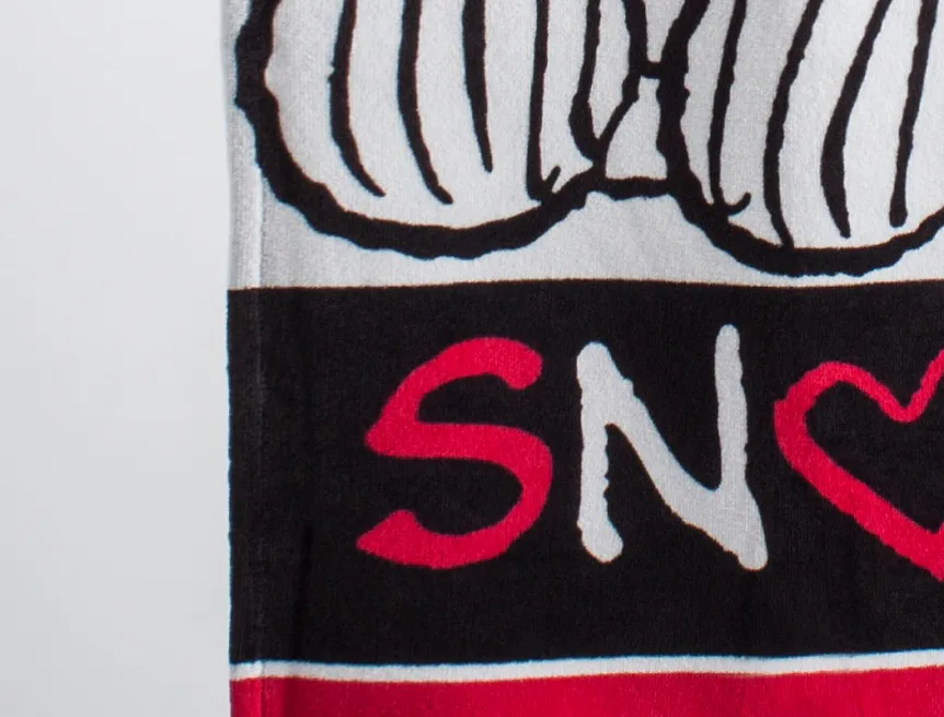 Co takhle přibrat ke koupání i usměvavého psíka Snoopyho? Plážové osušky mají hebký velurový povrch (základem je střižené froté). Vyrobeno z kvalitní 100% bavlny, gramáž 420 gr/m2. Potisk je jednostranný.