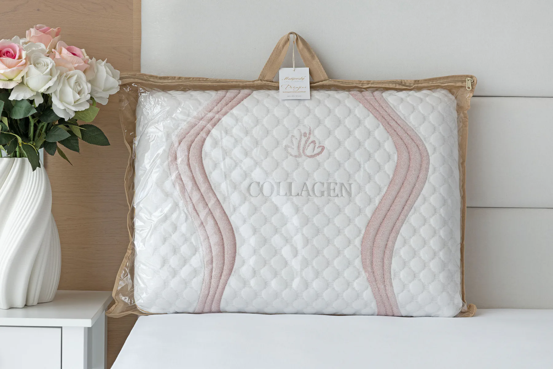 Balení: Kolagenový polštář je balený v praktické tašce z netkané textilie.