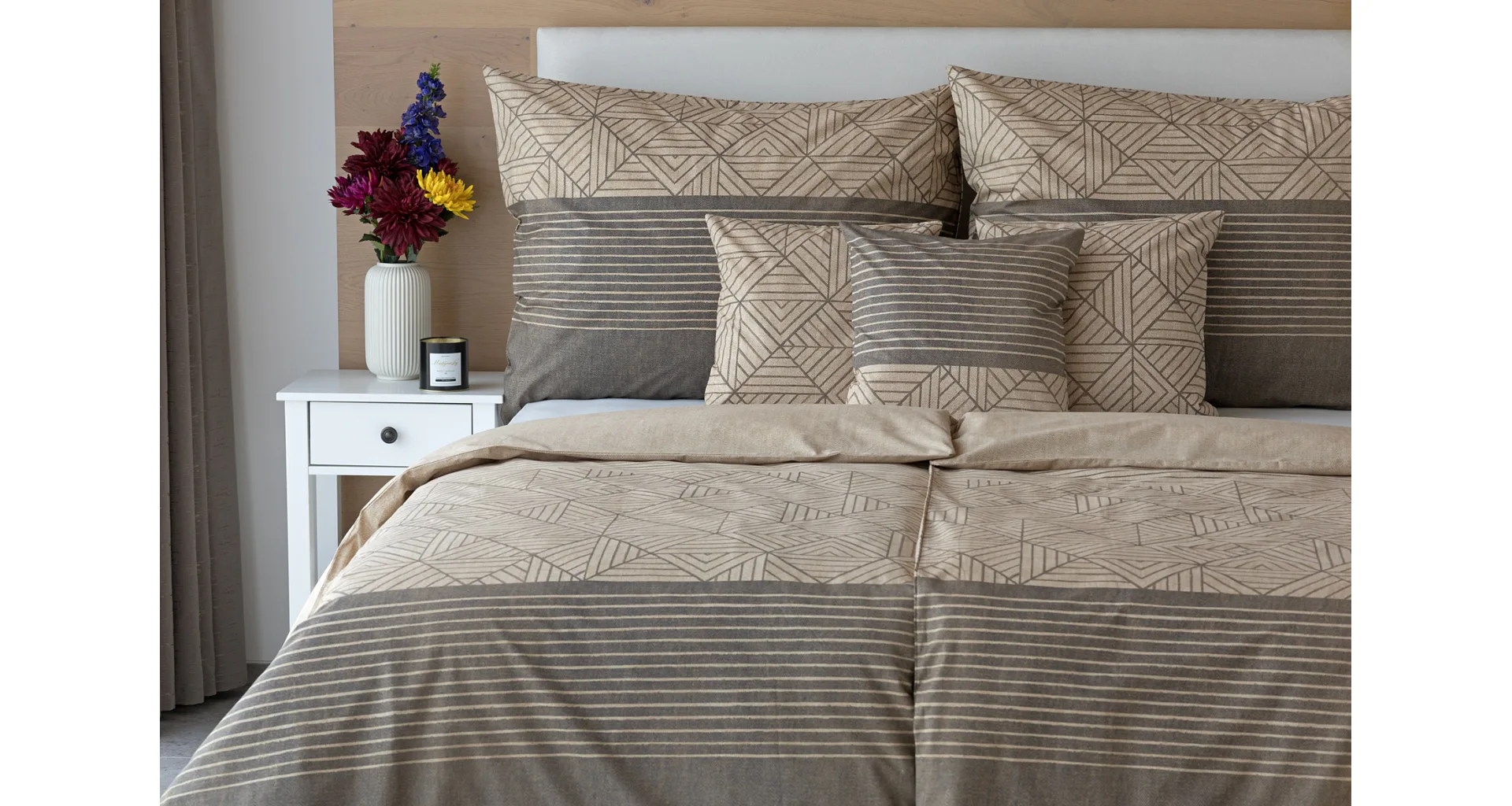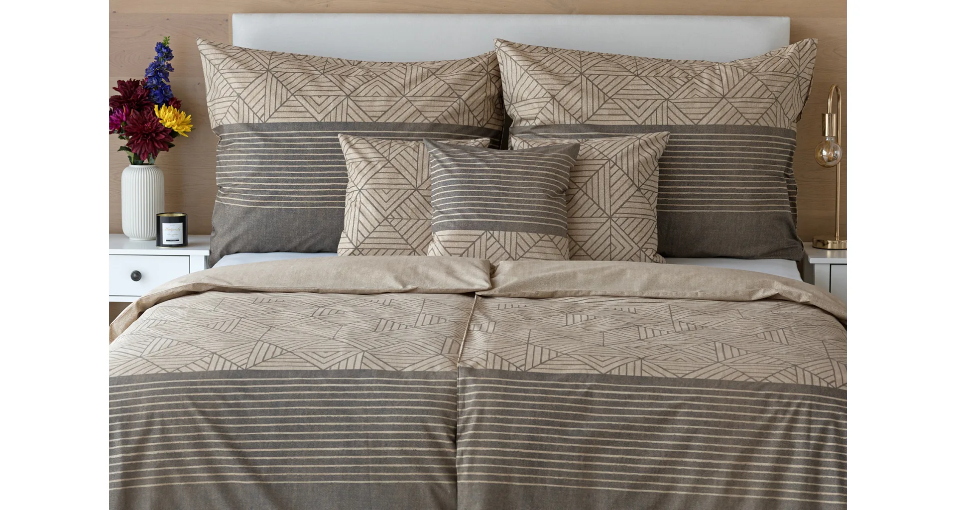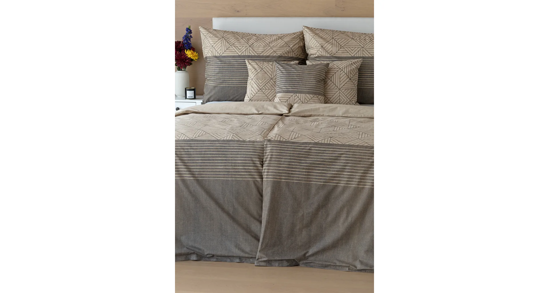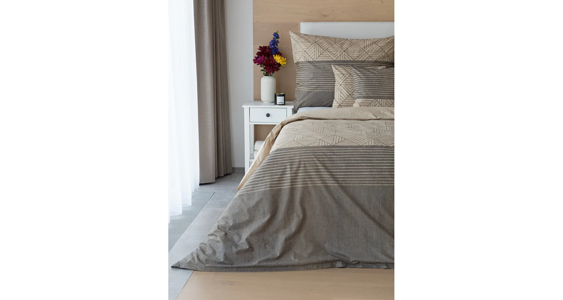 Zariaďte si spálňu v znamení striedmej elegancie s bavlnenými obliečkami Pietro. Jemný geometrický vzor v kombinácii šedých a prírodných béžových tónov dodá interiéru hrejivý nádych.