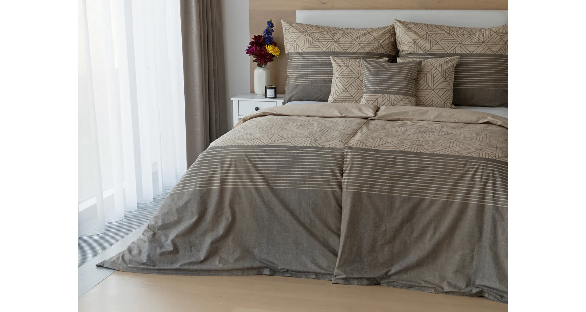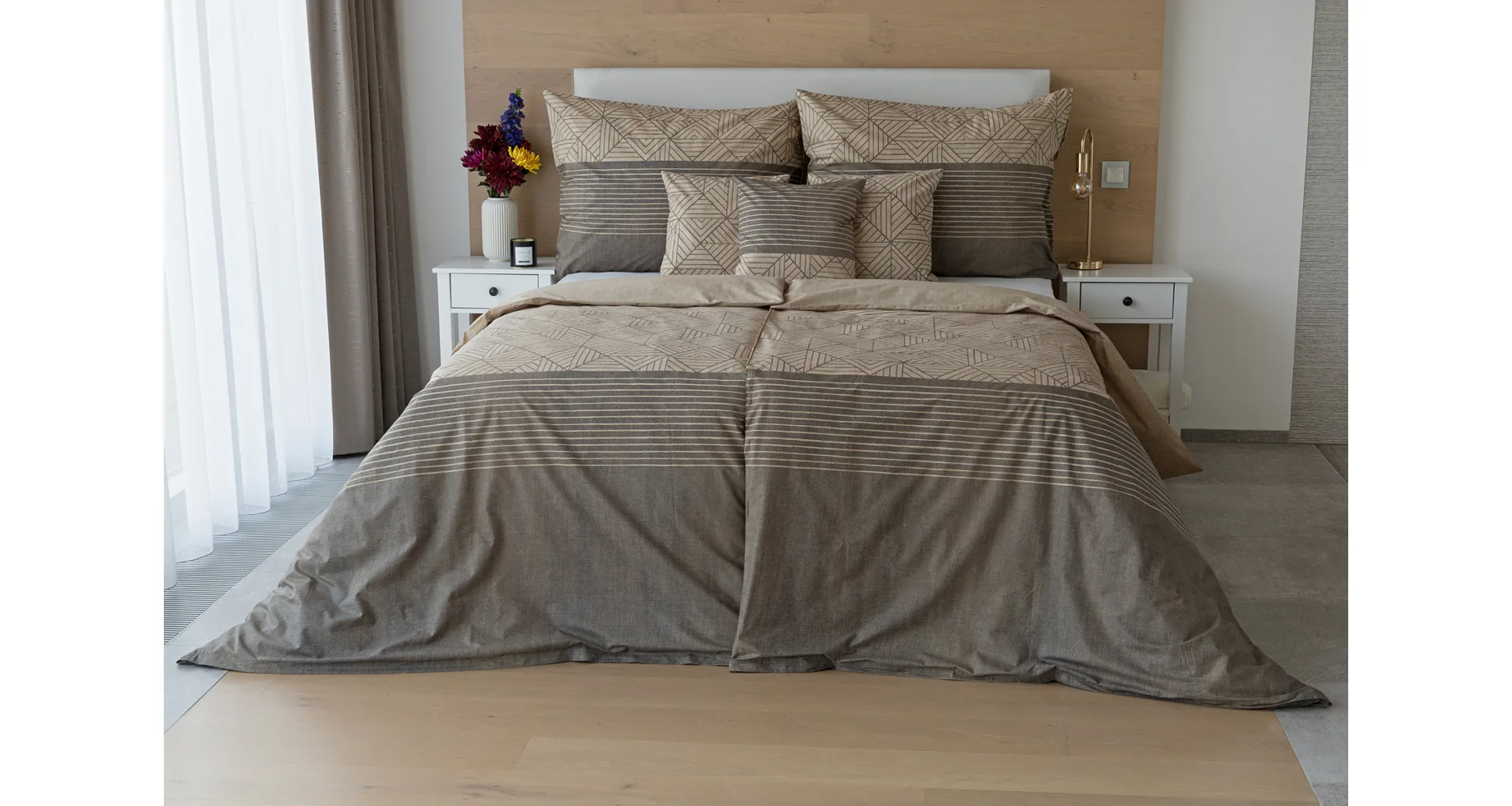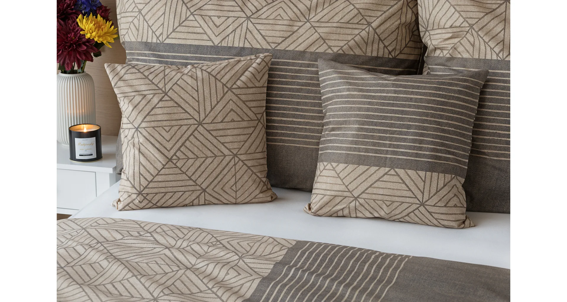 Zariaďte si spálňu v znamení striedmej elegancie s bavlnenými obliečkami Pietro. Jemný geometrický vzor v kombinácii šedých a prírodných béžových tónov dodá interiéru hrejivý nádych.