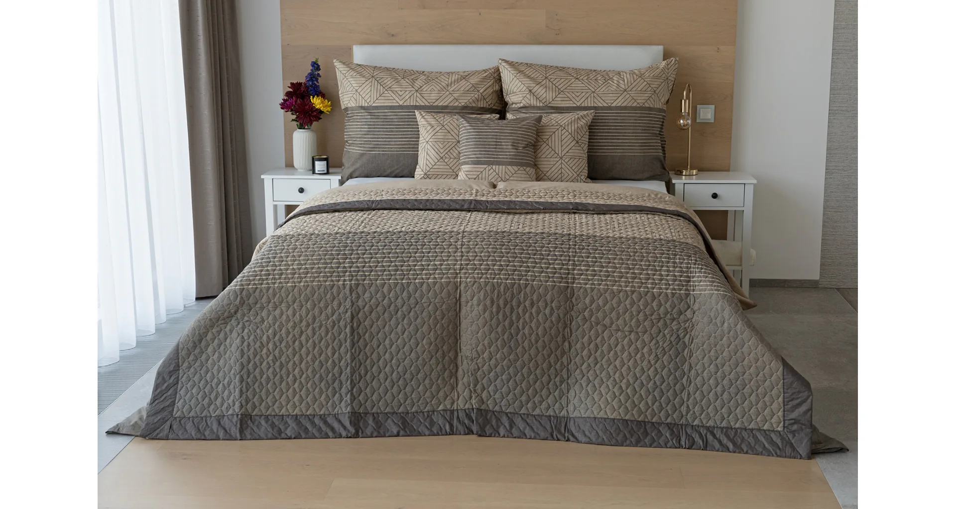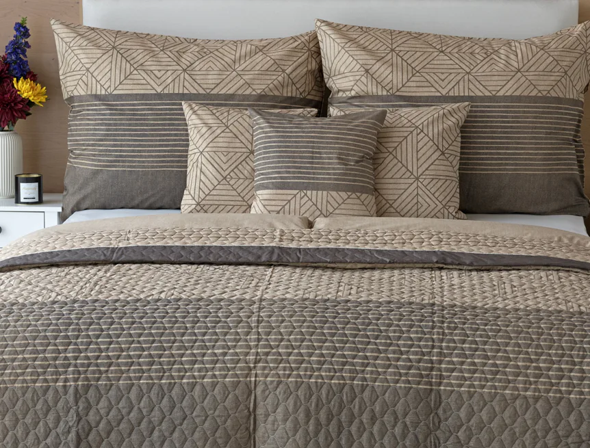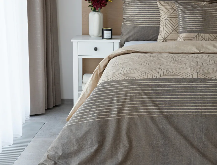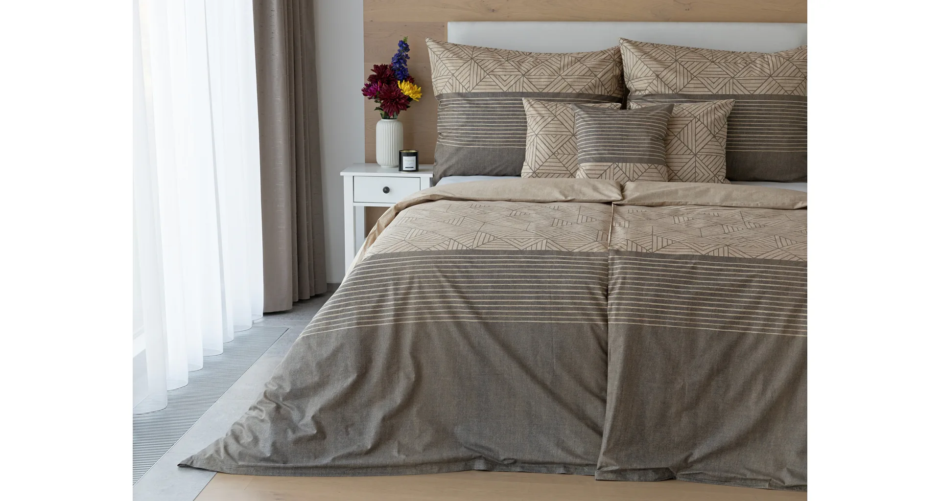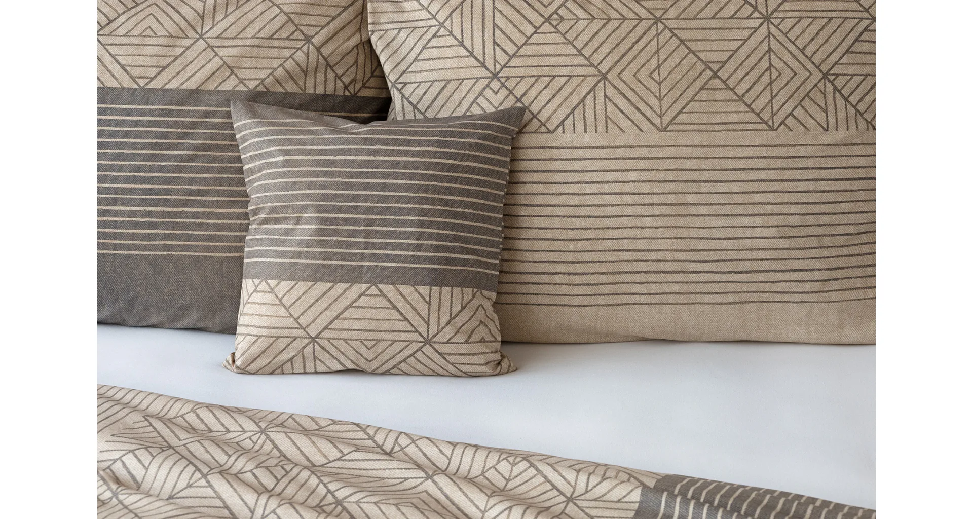 Zariaďte si spálňu v znamení striedmej elegancie s bavlnenými obliečkami Pietro. Jemný geometrický vzor v kombinácii šedých a prírodných béžových tónov dodá interiéru hrejivý nádych.