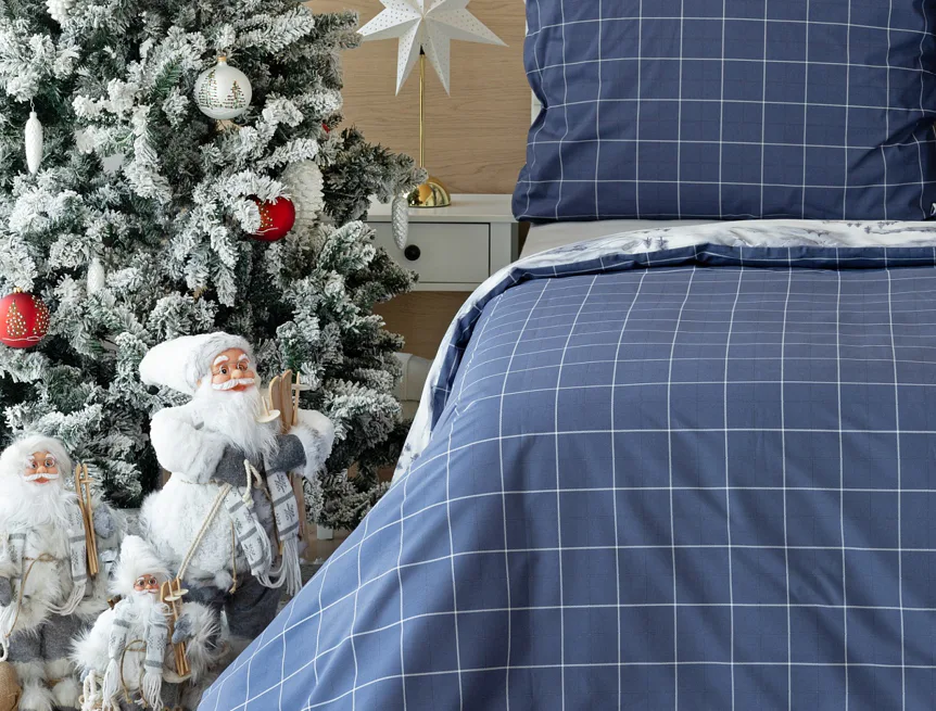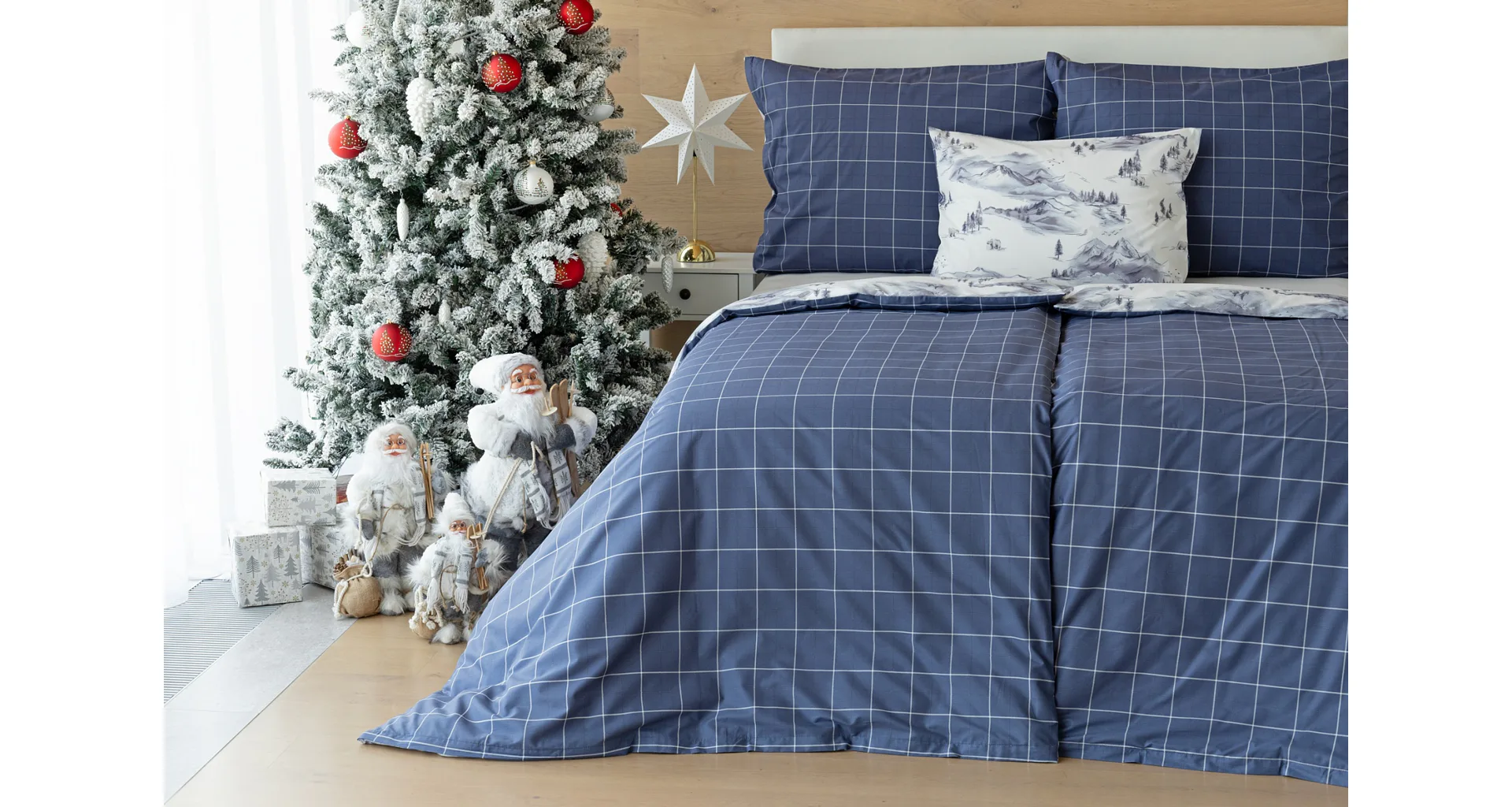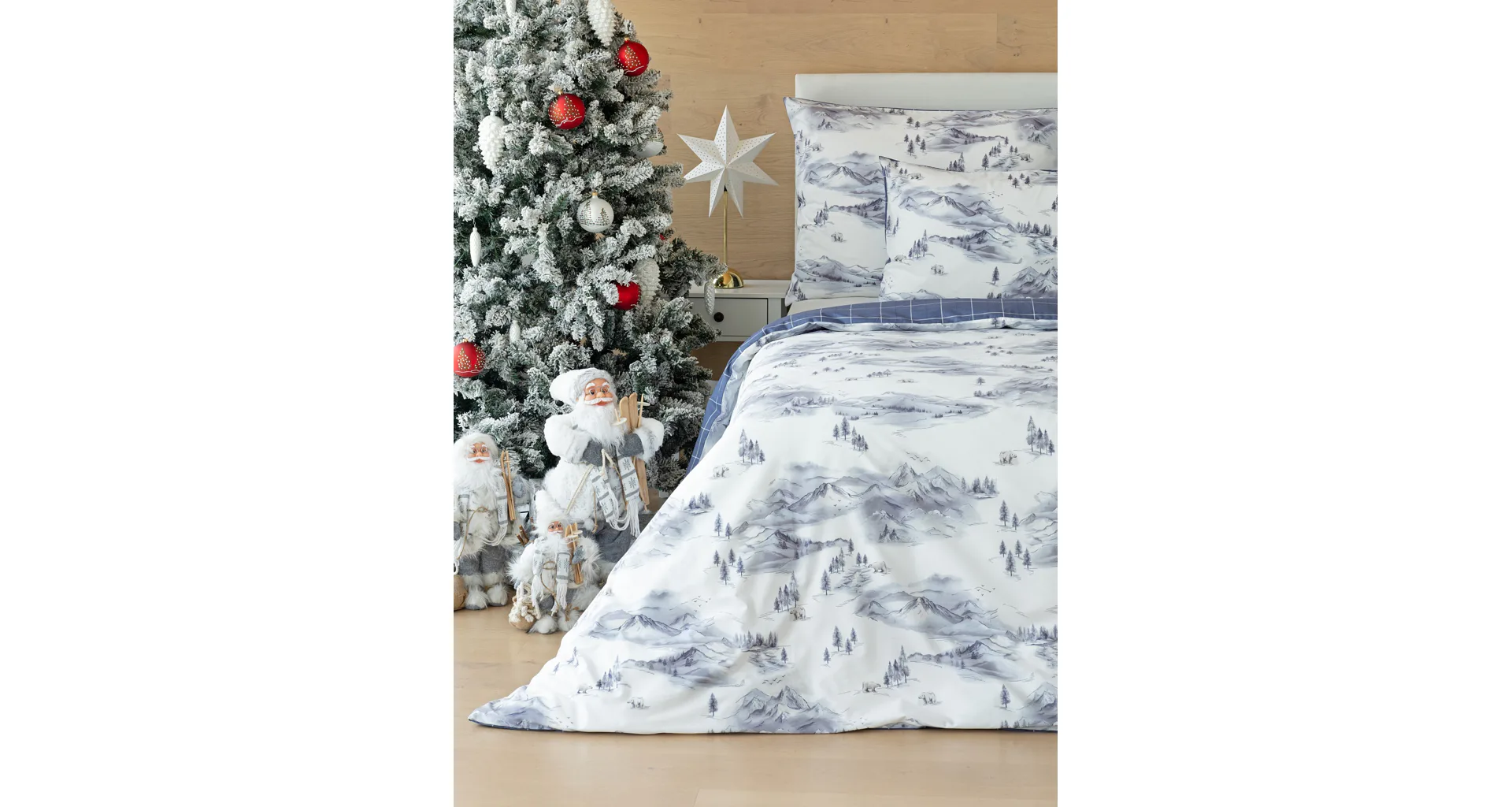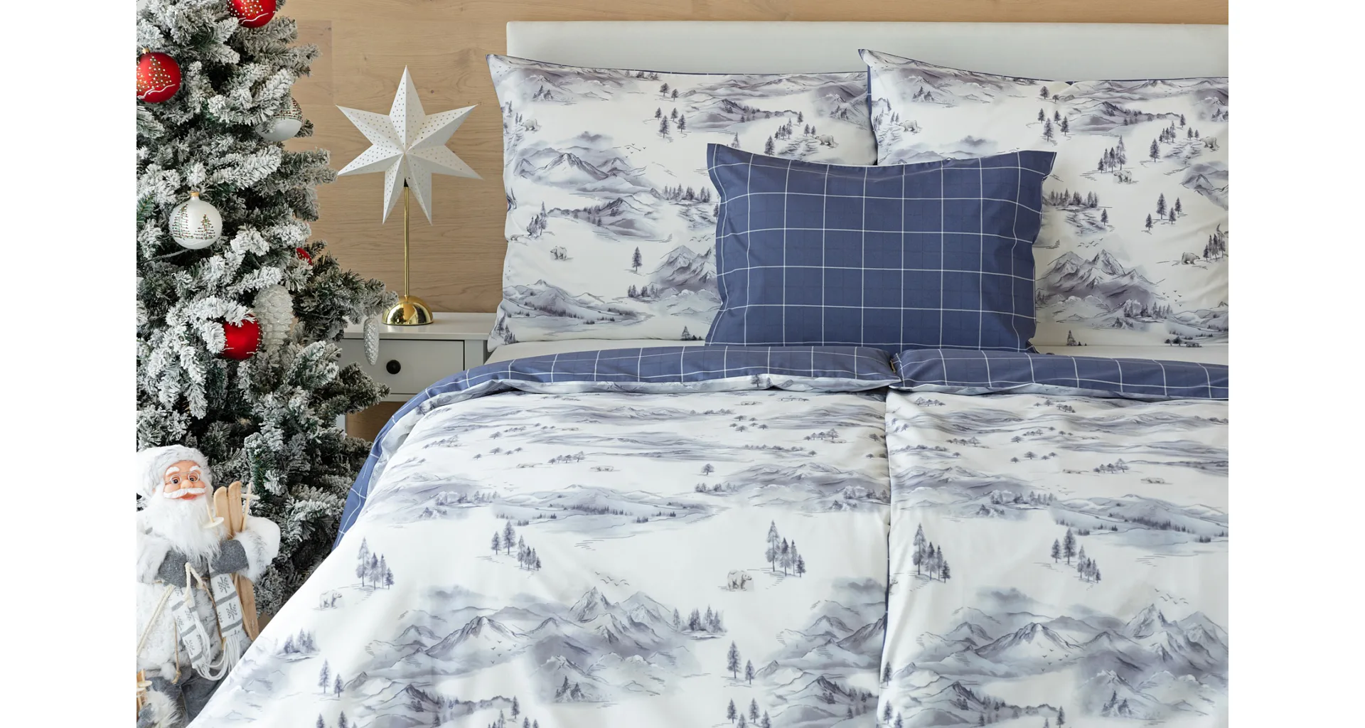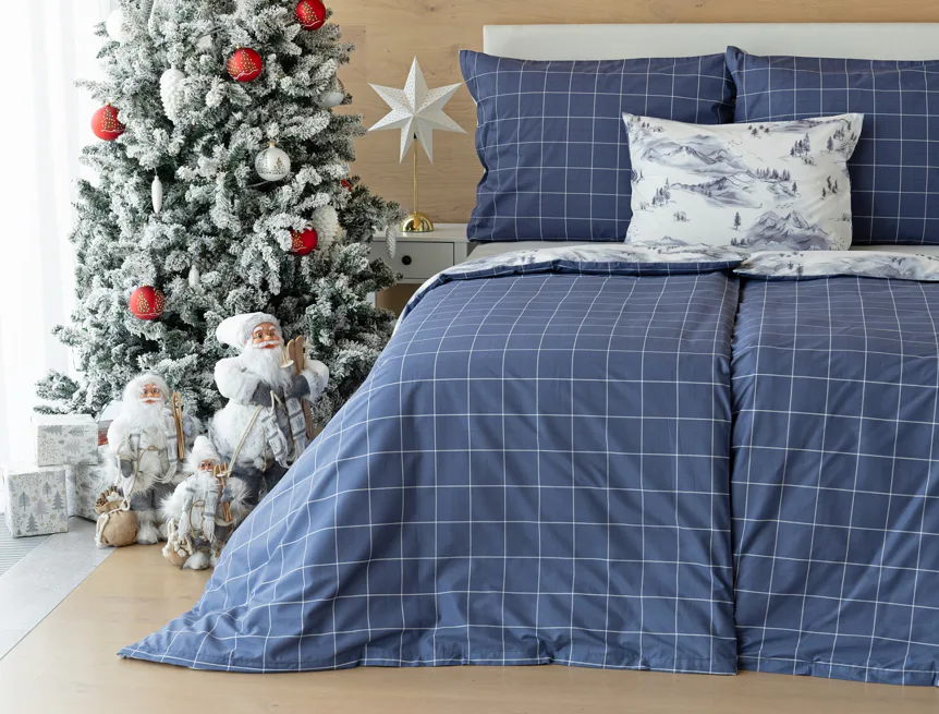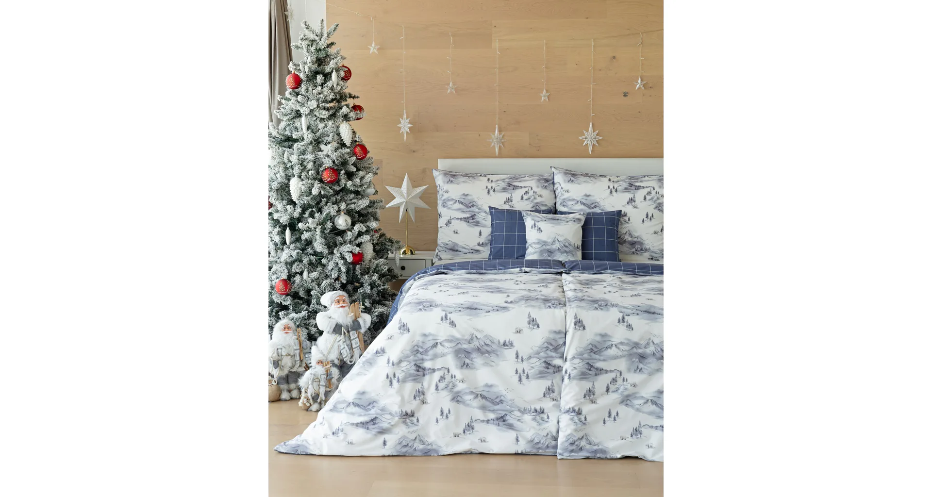 Bavlnené obliečky Polar Blue vnesú do vašej spálne sviežosť a navodia tú správnu zimnú atmosféru. Vrchnú stranu obliečok zdobí kresba horskej krajiny v palete modrošedých tónov na snehovo-bielom podklade. Spodnú stranu tvorí kocka s bielou kontúrou na modrošedom podklade. Vďaka tomuto obľúbenému obojstrannému prevedeniu môžete pri stlaní hravo experimentovať!