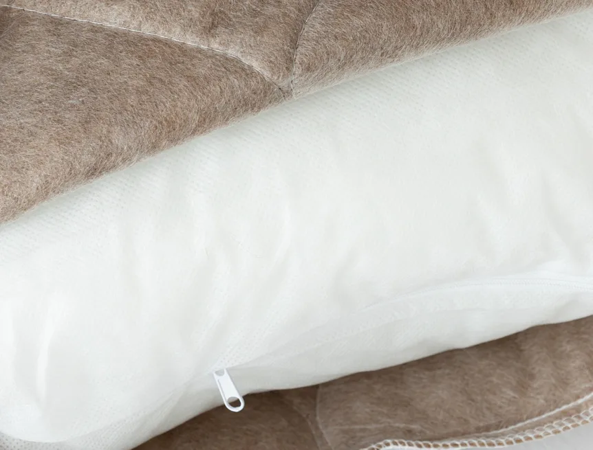 Velbloudí srst je u polštáře obsažena v podšívce vrchního bavlněného potahu, což je plně dostačující pro zajištění efektivní termoregulace, a zároveň praktické pro údržbu. Výplň polštáře tvoří polyesterové kuličky, díky kterým je náplň prodyšná a objemná, nesléhá a krásně se naklepává. V porovnání s polštáři plněnými dutým silikonizovaným vláknem je polštář Camel spíše tužší a poskytuje stabilní oporu.