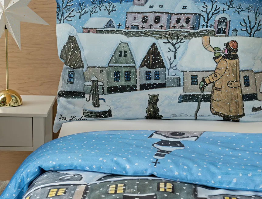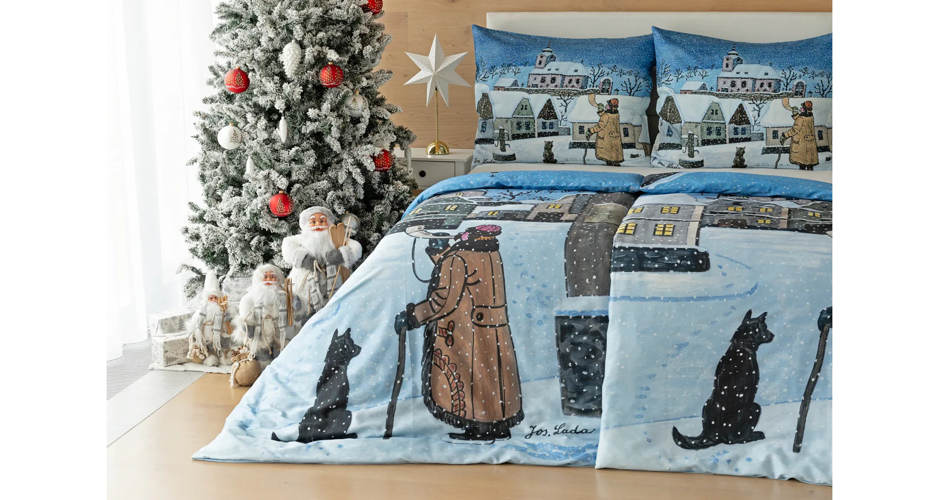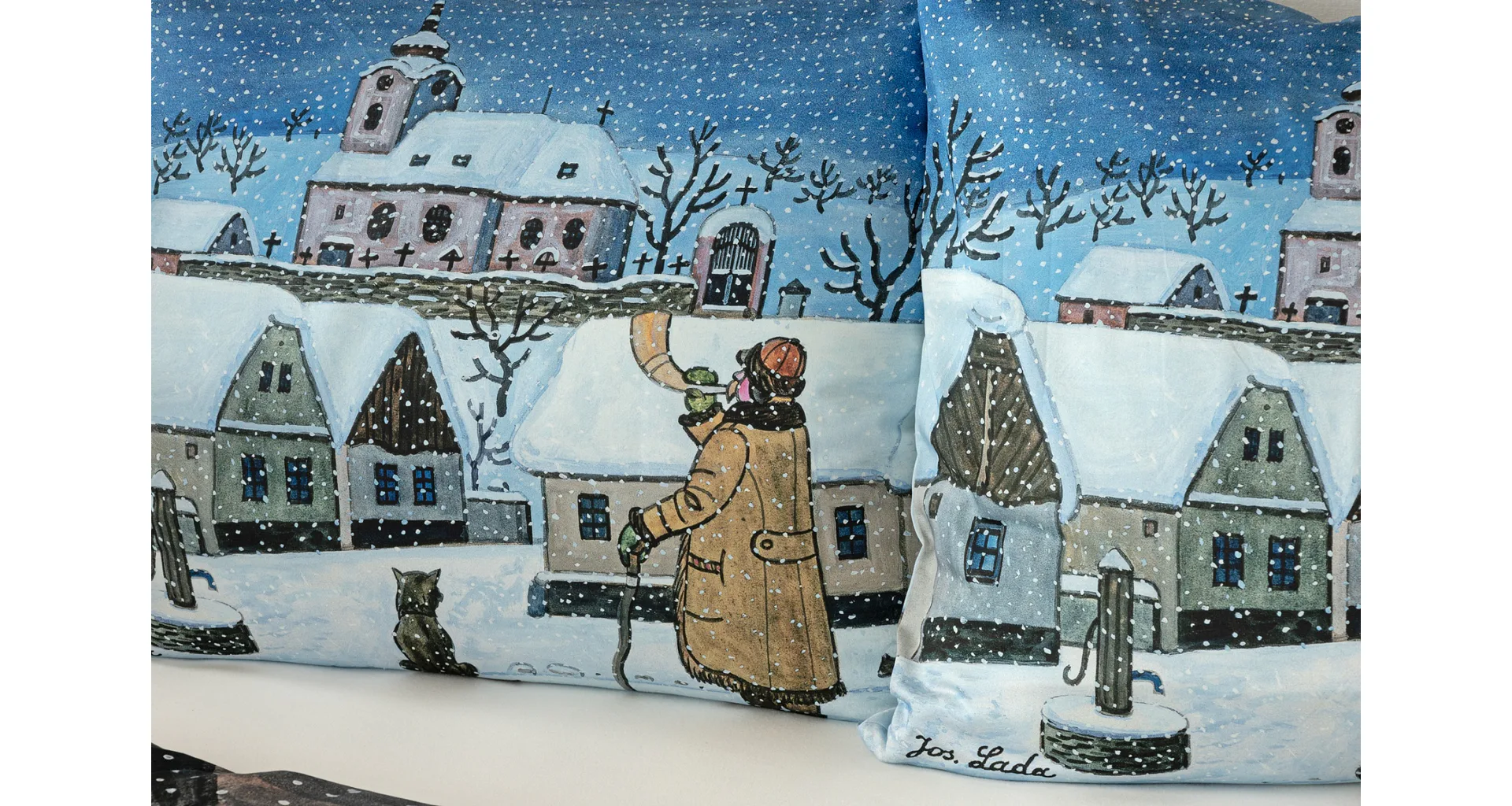 Obliečky so zimným motívom kresieb Josefa Lady, ktoré do českých domovov prinášajú tú pravú vianočnú poetiku, sa stanú unikátnym praktickým solitérom v interiéri aj originálnym darčekom. Vykúzlite si jedinečnú atmosféru aj u seba doma vďaka bavlneným obliečkam Ponocný so psom.