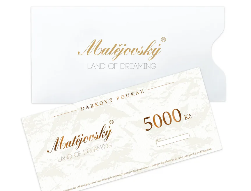 Poukaz zasíláme v tištěné formě v dárkovém obalu a lze ho využít pouze na e-shopu www.matejovsky-povleceni.cz nebo v kamenné prodejně v Semilech. Platnost poukazu je 1 rok od zakoupení.