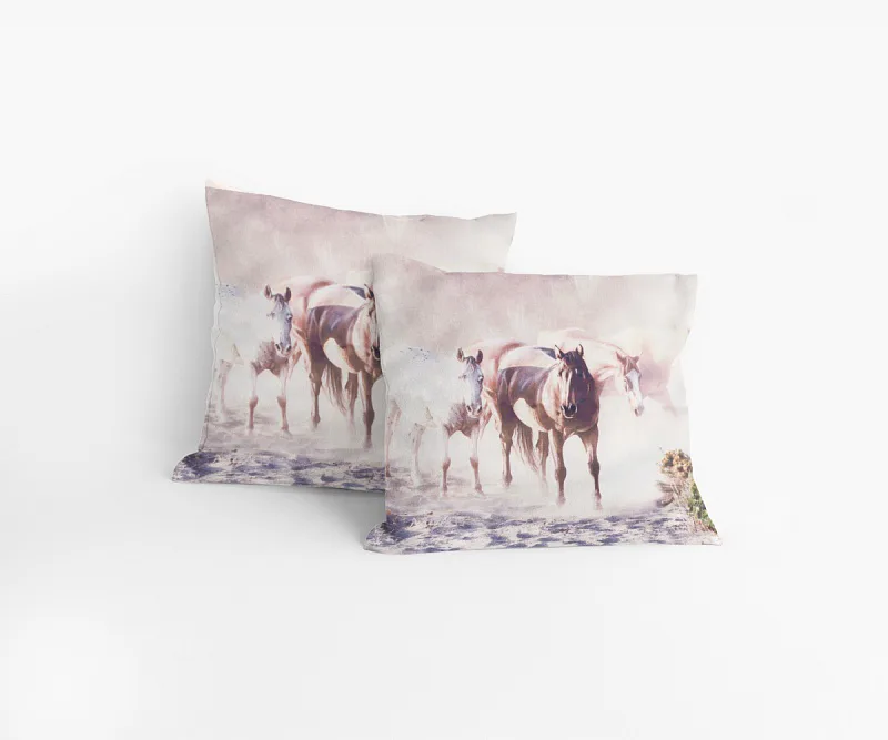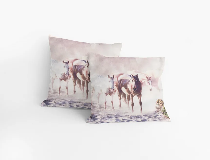 Svobodný svět koní se zrcadlí na povláčku KONĚ - 100% bavlna a zipový uzávěr.