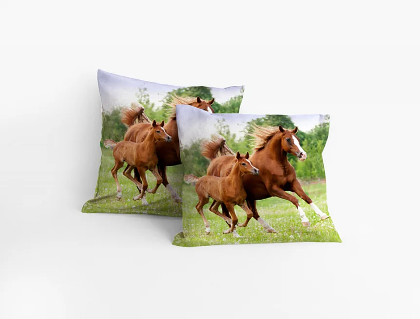 Nejmodernější digitální tisková technologie nám umožnila vyrobit pro vás limitovanou edici samostatných povláčků, které mají nádherné barvy a precizní detaily. Povlak s koňmi udělá radost každému milovníkovi těchto krásných zvířat.
