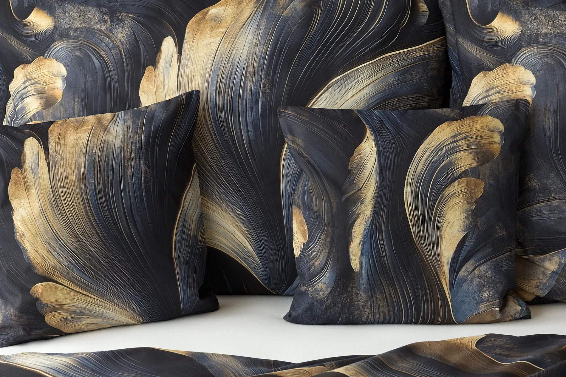 Povlaky jsou šité z metráže, každý kus je proto jiný, resp. zachycuje jinou část vzoru. Přední a zadní strana jednotlivých kusů se rovněž liší s ohledem na zachycenou část vzoru.